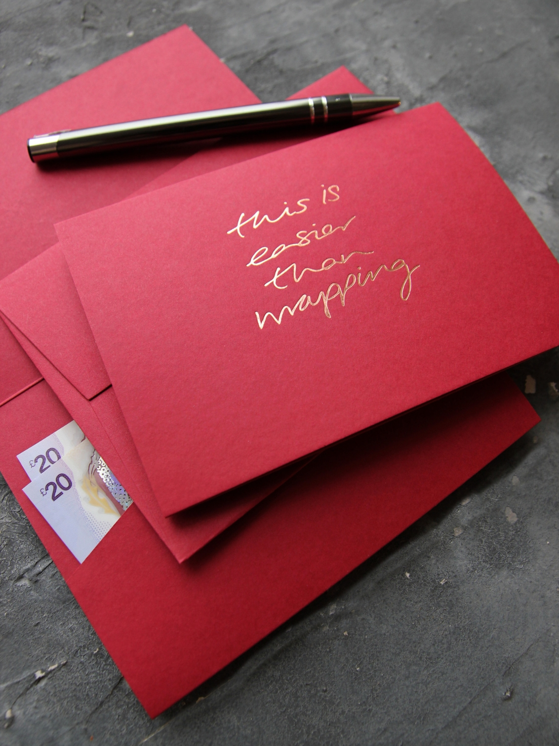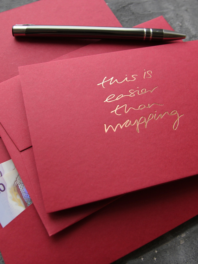 Let’s be honest: cash is always the right size. Our This Is Easier Than Wrapping card keeps it real in handfoiled rose gold on scarlet paper. A luxury shortcut for Christmas gifting - stylish, straightforward, and guaranteed to get a laugh. Comes with a m...