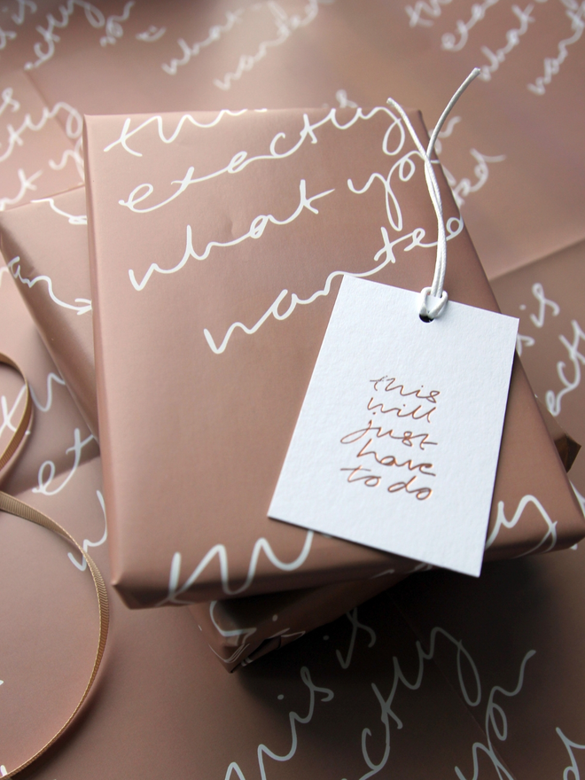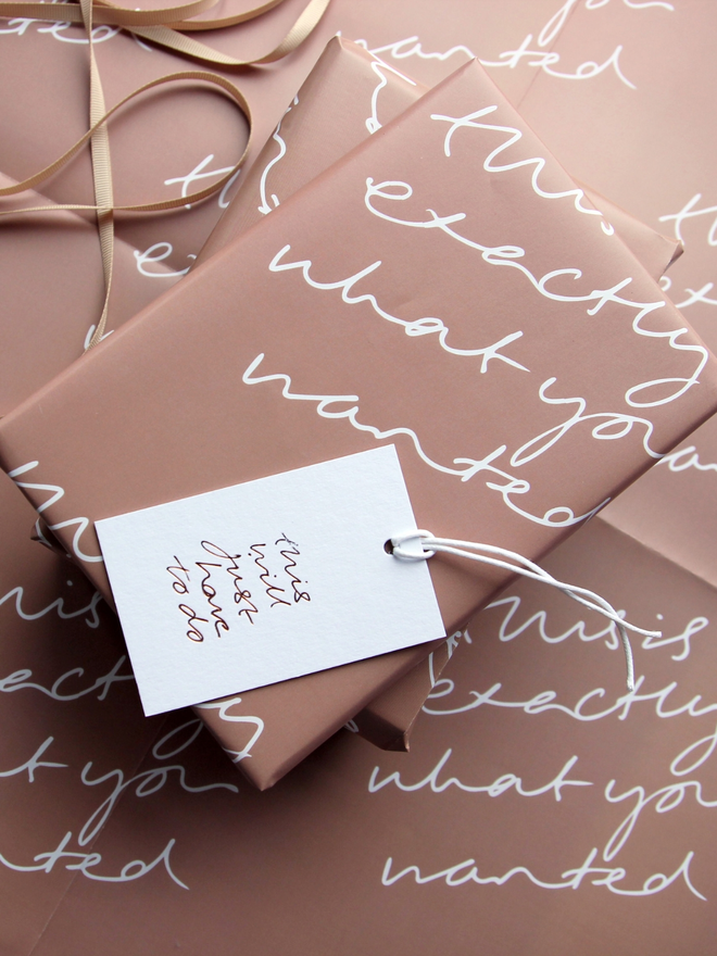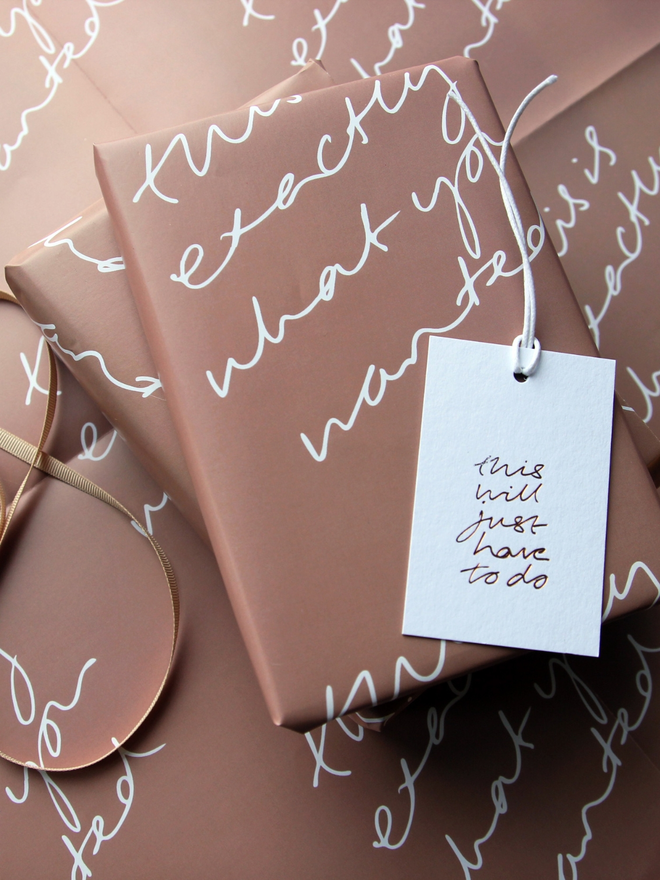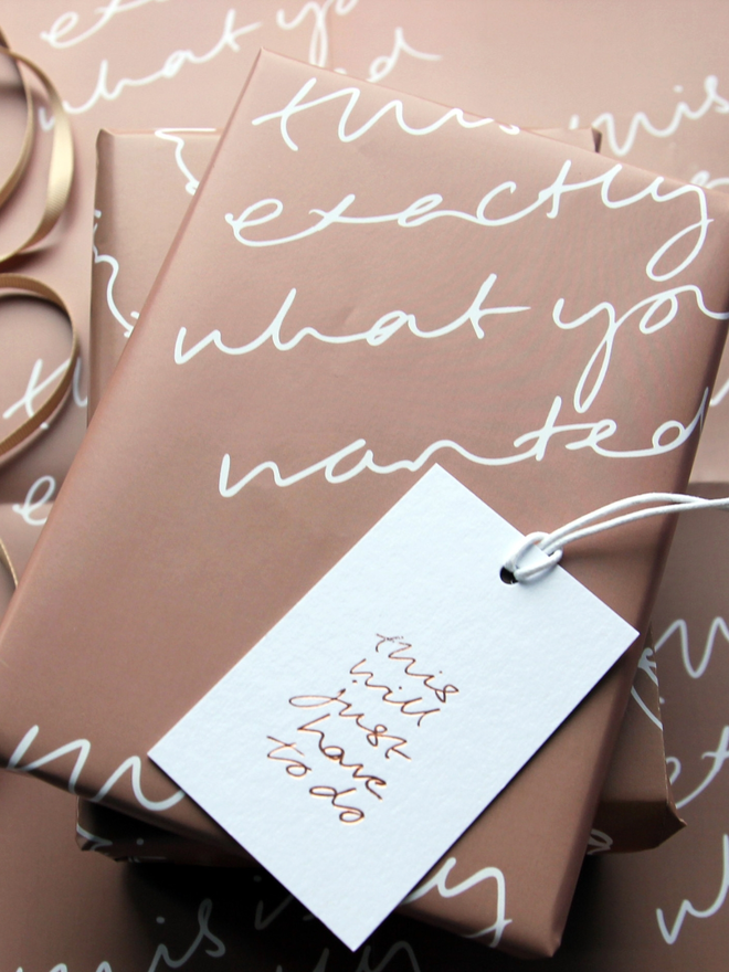 This hand-foiled wrapping paper says what we’re all thinking. Bold, cheeky, and perfect for those moments when you know your gift is spot on (or when you’re just good at faking it).