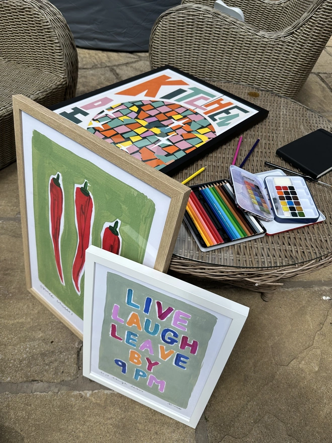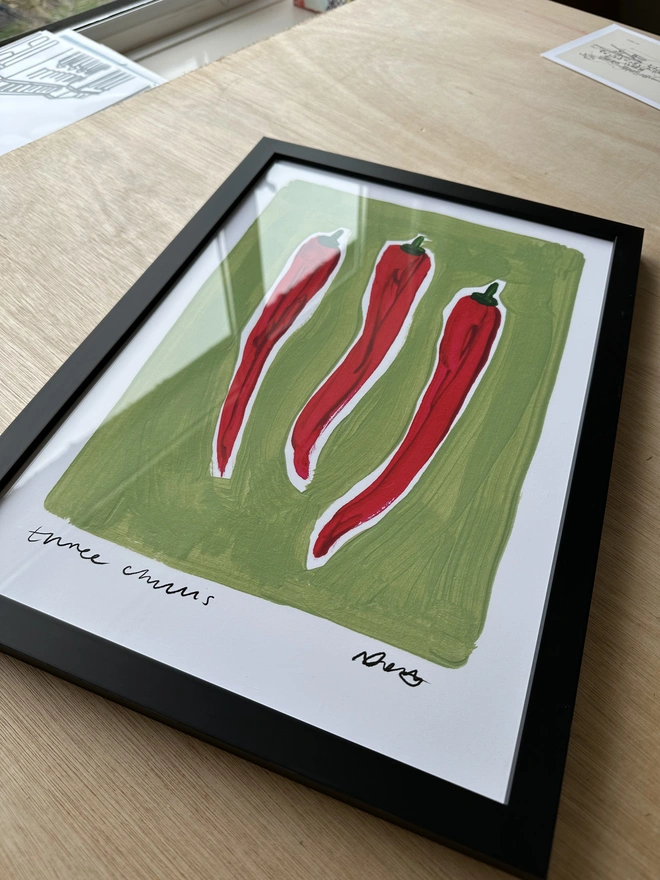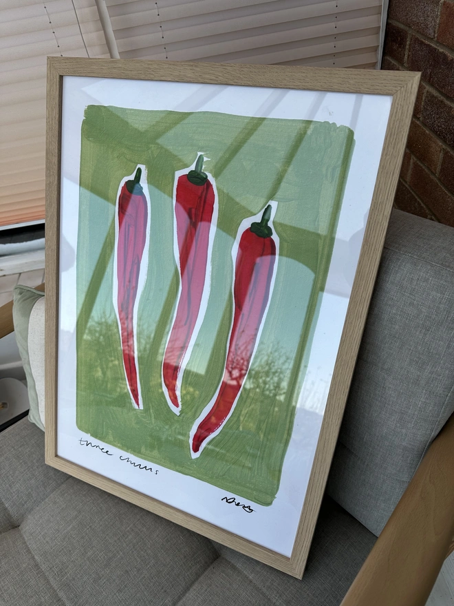 'Three Chillies' Hand Painted Art Print