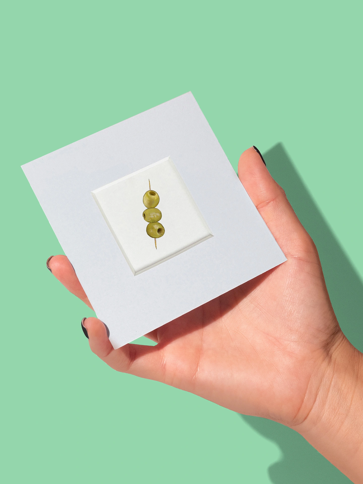 Three Cocktail Olives Tiny Print 4x4"