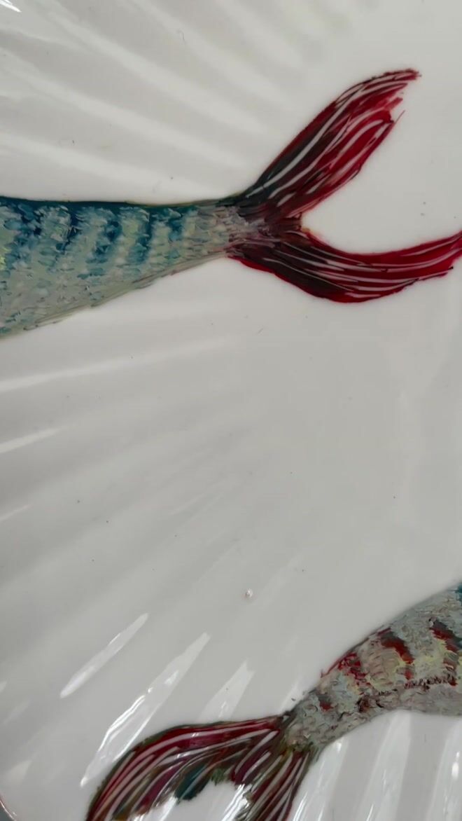 This particular plate was selected by the artist as the embossed mouldings echo the fins of the fish.
