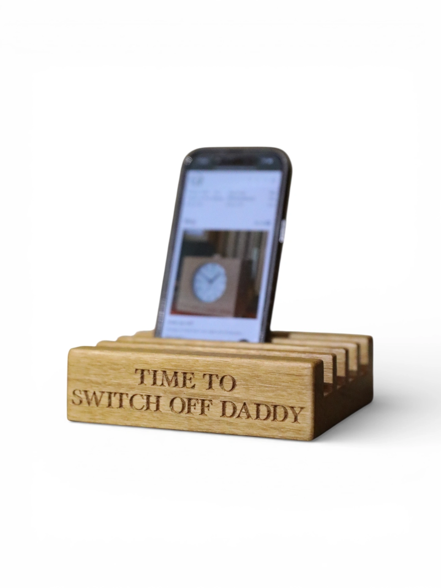 'Time to Switch Off Daddy' Oak Gadget Holder