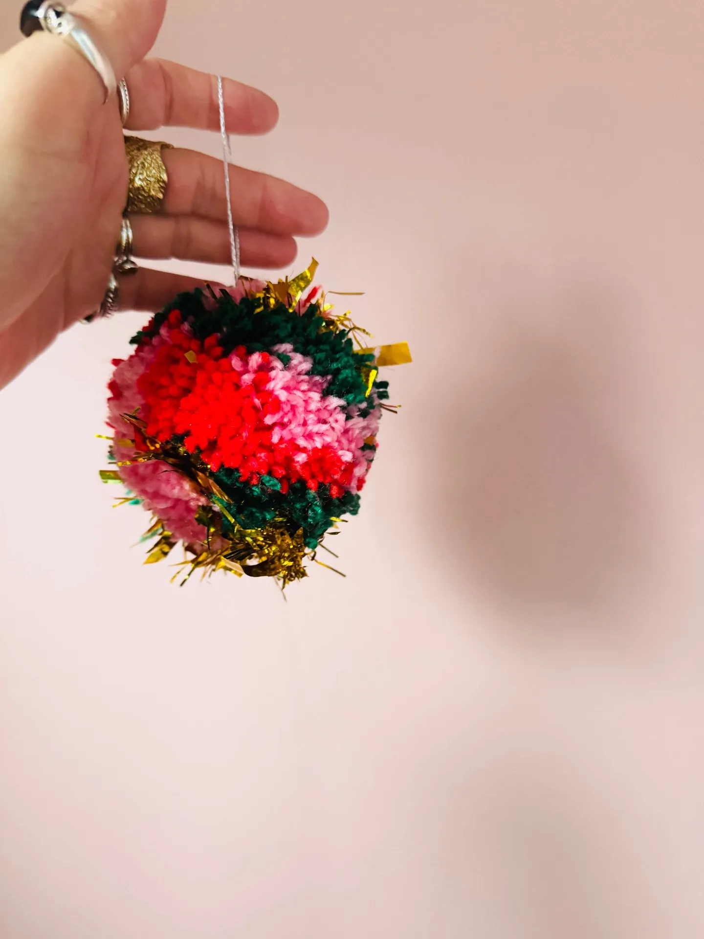 Tinsel Pom Pom Christmas Bauble