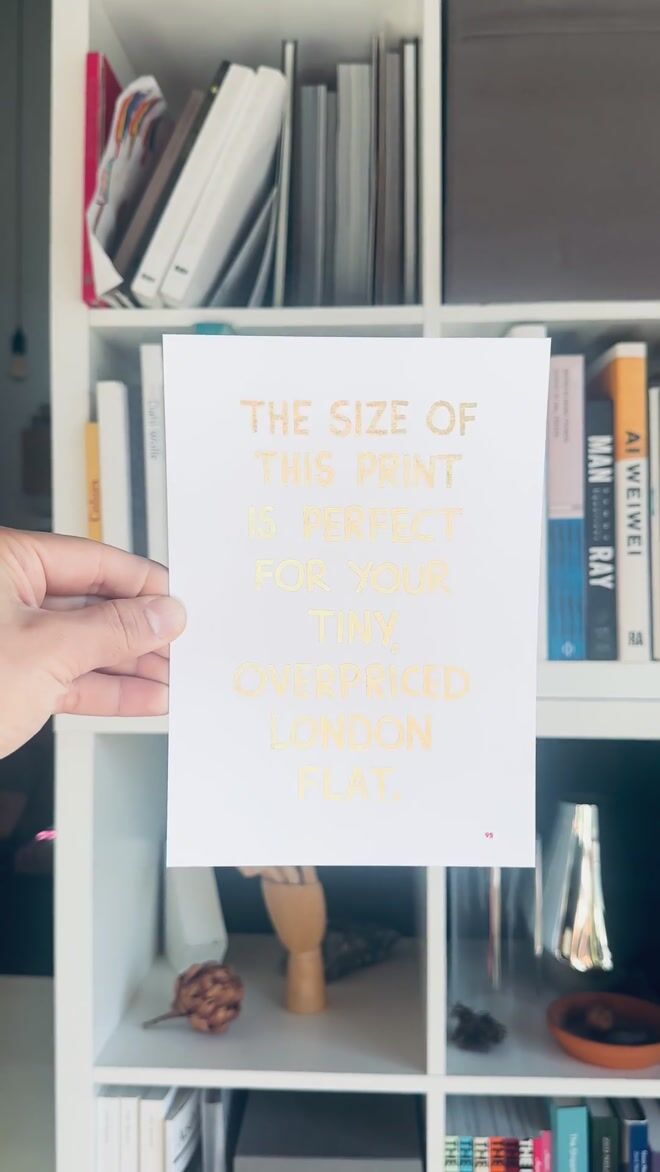 A limited edition of 95, Tiny flat warming gift - LND is a hand-made screen print created with water-based blue ink on 400gsm. G.F Smith Munken Polar White paper. Or Gold foil for the Gold edition.