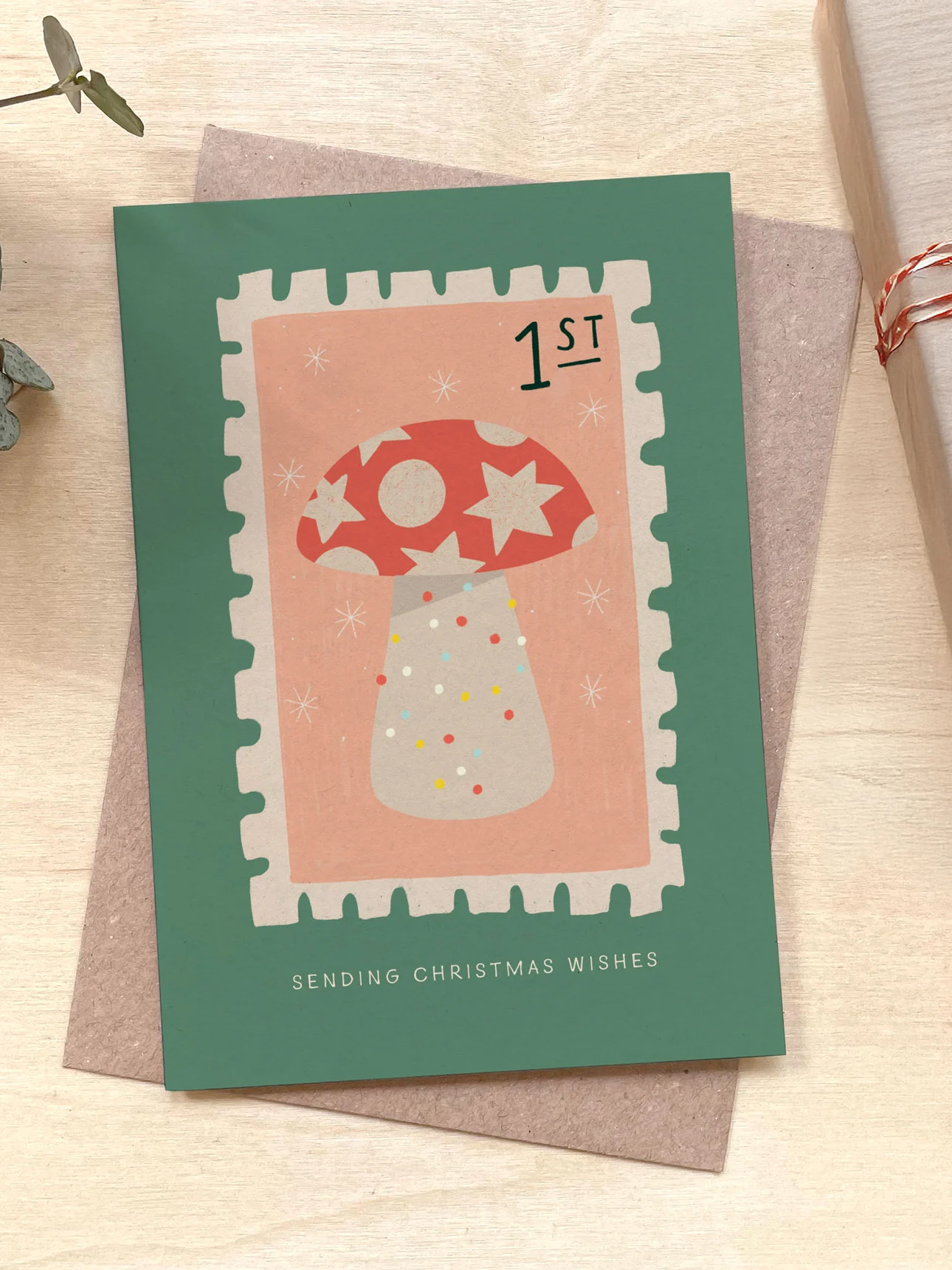 Toadstool Stamp - Recycled Coffee Cup Christmas Card