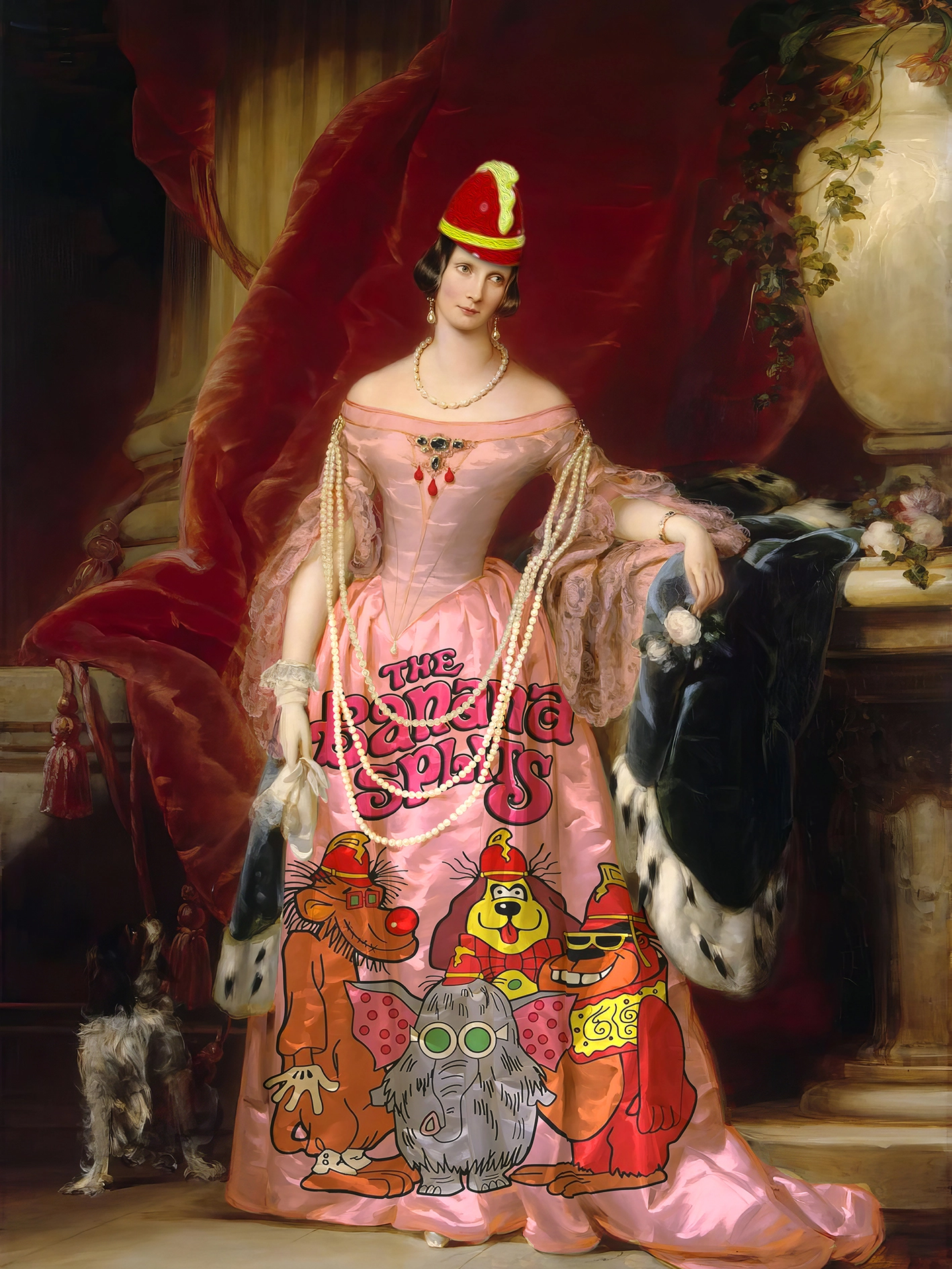 Part of a large ongoing series of works called The Product Placement Project. Humorous & fun Pop-Surrealist work exploring the connections and boundaries between art and advertising and a reflection on the functions of fashion & clothing