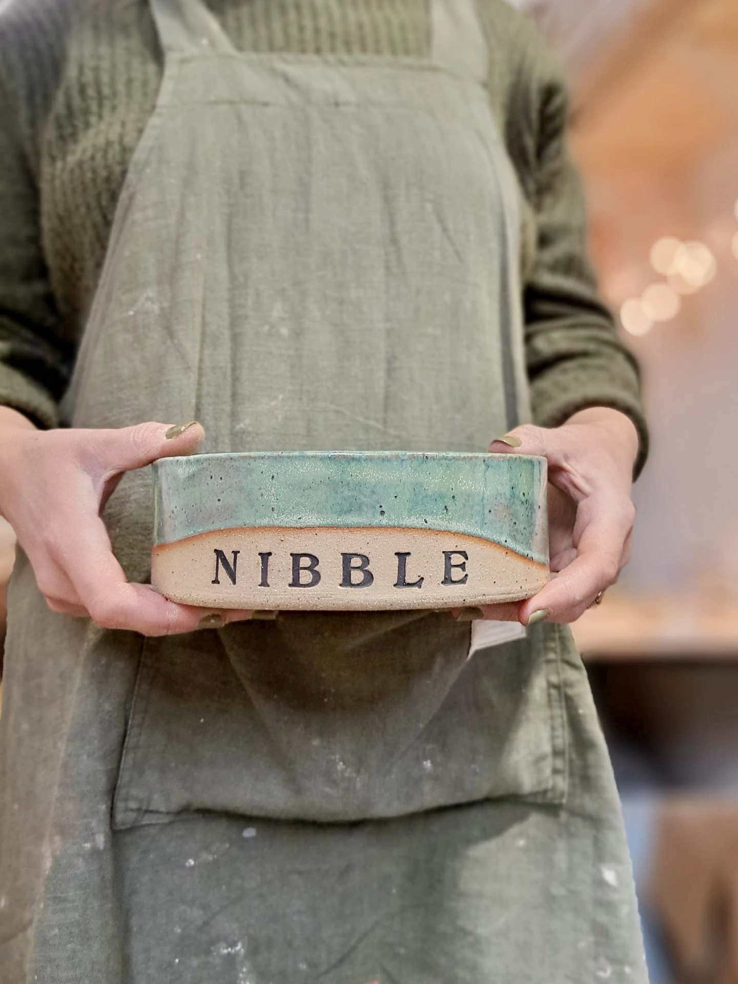 These stoneware Pet Bowls are made using the art of hand-building which requires the clay to be rolled flat using a slab roller. Pattern pieces are then cut and names are stamped into the clay. I then build into the desired shape with the help of a former...