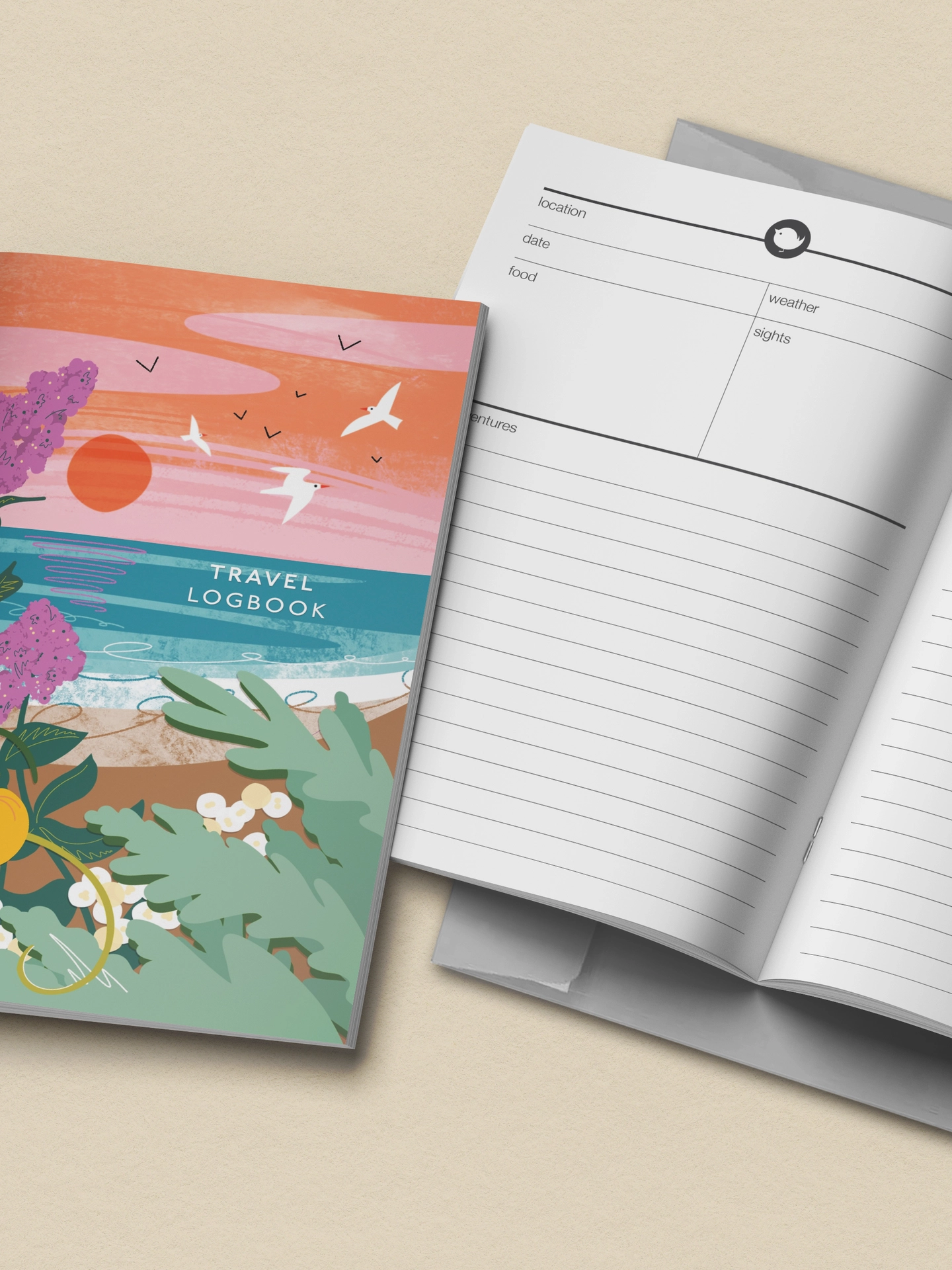Part of my new collection of A5 notebooks that you can post out instead of a card. This beautiful travel logbook comes with an envelope and a little card to add a message and sits just under the weight (100 g) to post out with a letter stamp (UK only).