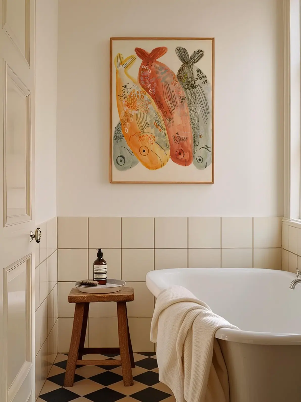 Hand-painted mixed-media fish illustration inspired by a trip to Paxos, Greece. This piece captures the warmth, colour, and relaxed rhythm of Mediterranean life, making it a calm and characterful addition to any space. Printed as a high-quality fine art giclée print, perfect for kitchens, dining rooms, or coastal-inspired interiors.