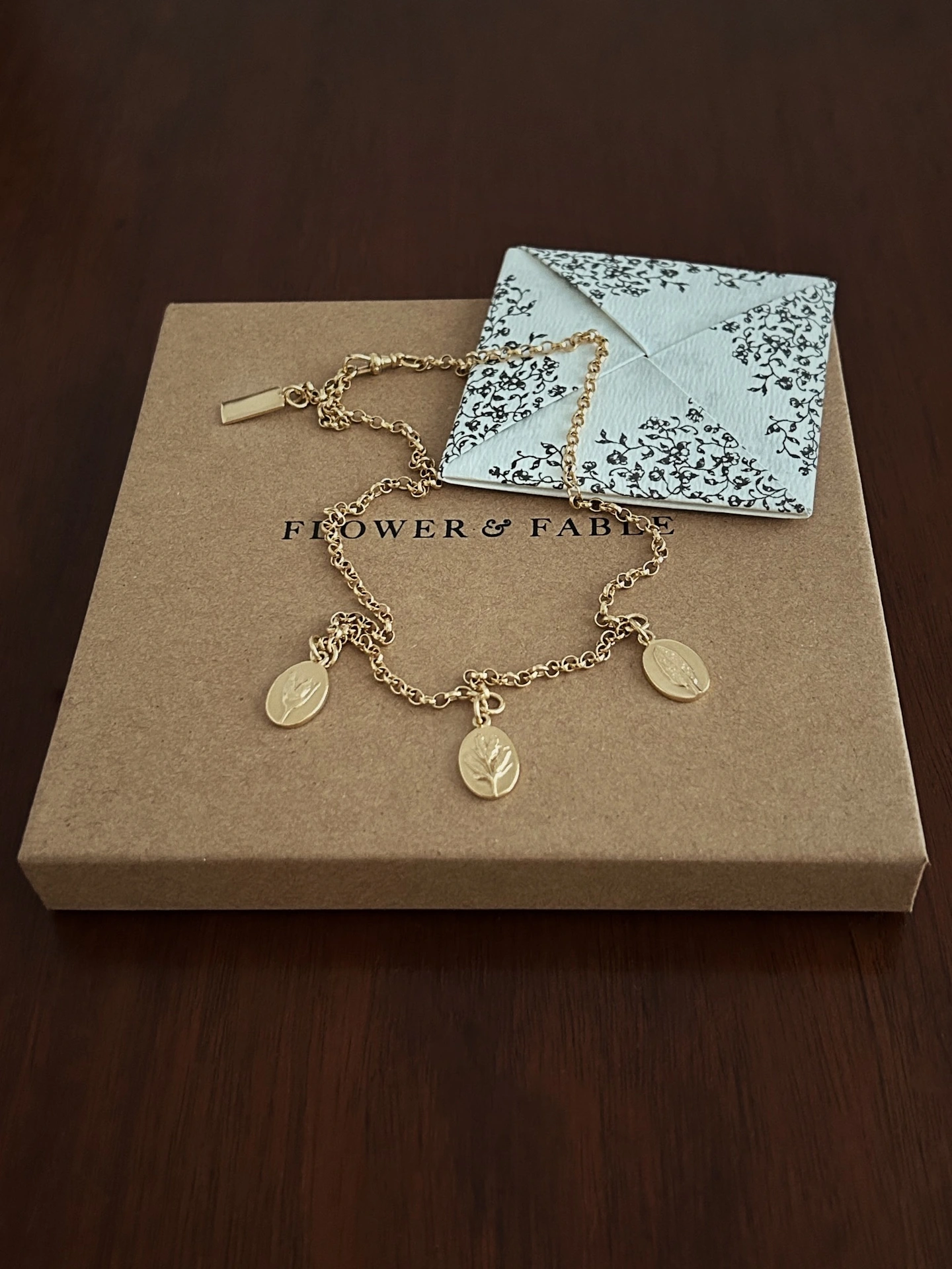 The sterling silver adjustable chain is finished with our signature hallmarked petite bar. Our medal charms are made with real flowers in sterling silver, using the traditional technique of lost wax casting. Your piece will be beautifully packaged with our signature box posy which changes with the seasons, and a gift card for a personal message.