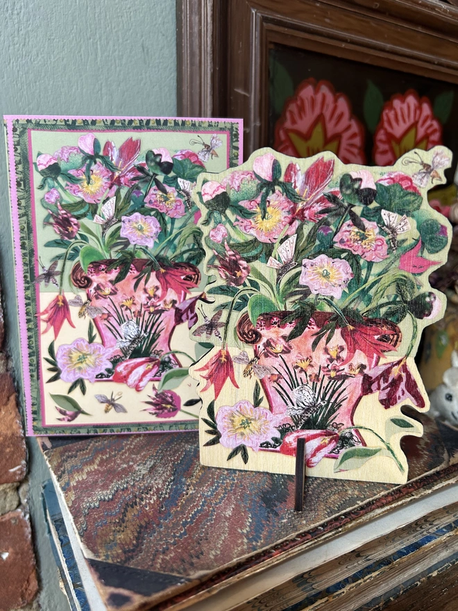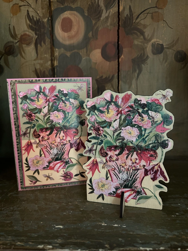 Tulips and Peonies A6 laser cut birch plywood keepsake with stand...