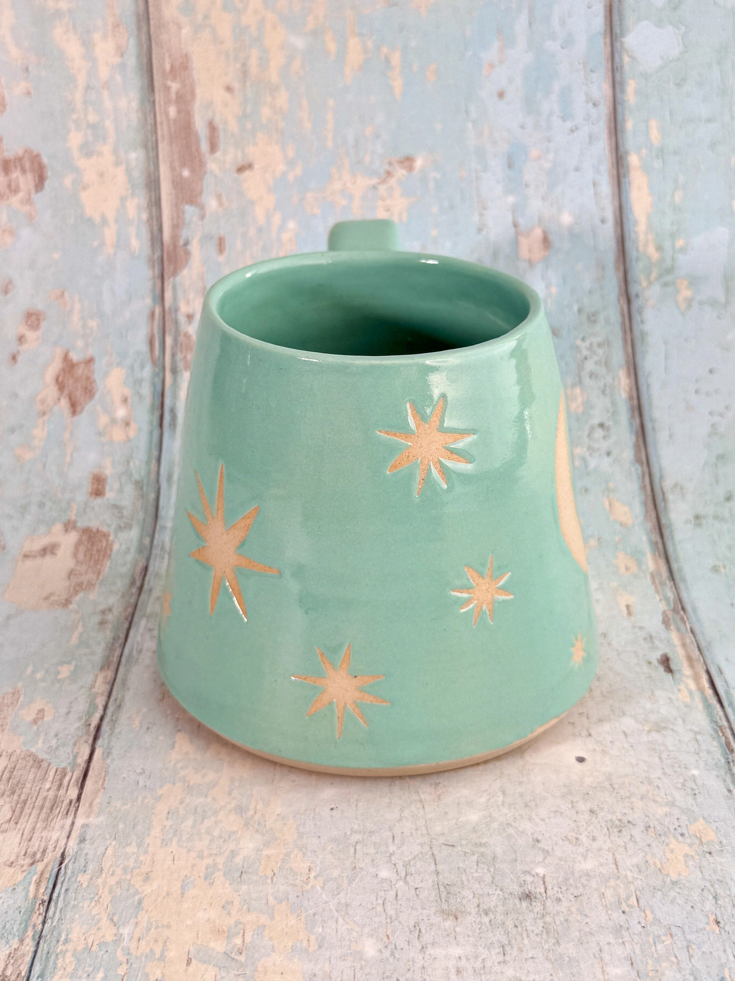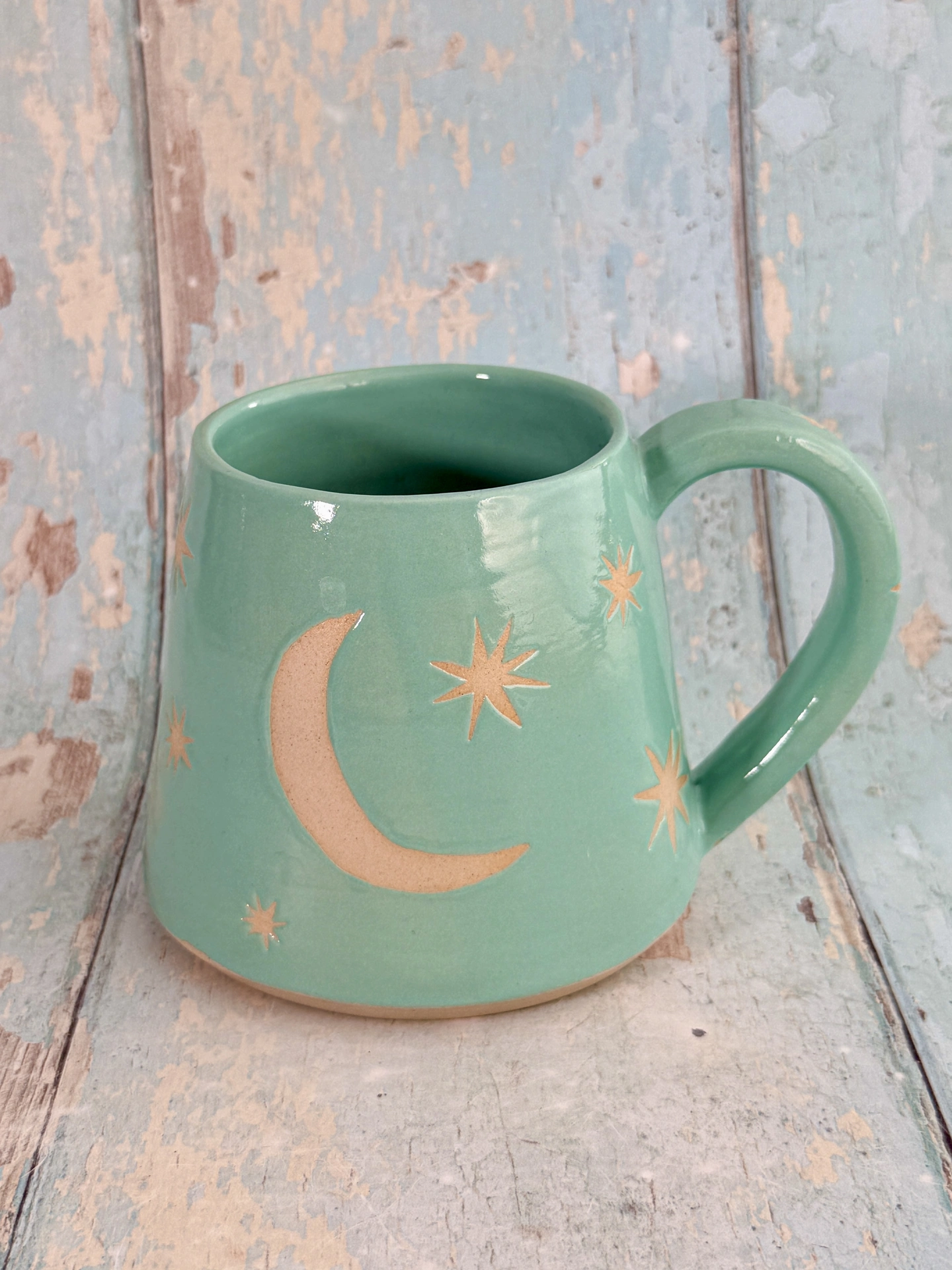 Turquoise Moon & Star Celestial Mug, Large Ceramic Cup