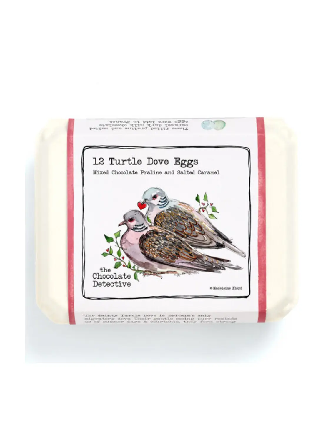 12 Chocolate Eggs, 6 filled with a fine hazelnut praline and 6 with a subtle salted caramel. A layer of milk and dark chocolate is filled with caramel or praline and then wrapped in a fine sugar shell and life-like speckles. Please note that egg colours may vary seasonally.