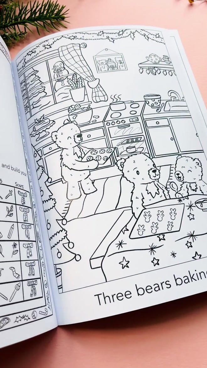 Inside, you’ll discover a heartwarming collection of hand-drawn colouring pages and fun puzzles that follow mischievous woodland animals as they get ready for Christmas- playful rabbits sneaking peeks at presents, cheeky monkeys caught in wrapping paper, cuddly bears baking winter treats, and sleepy reindeer preparing for their big night.