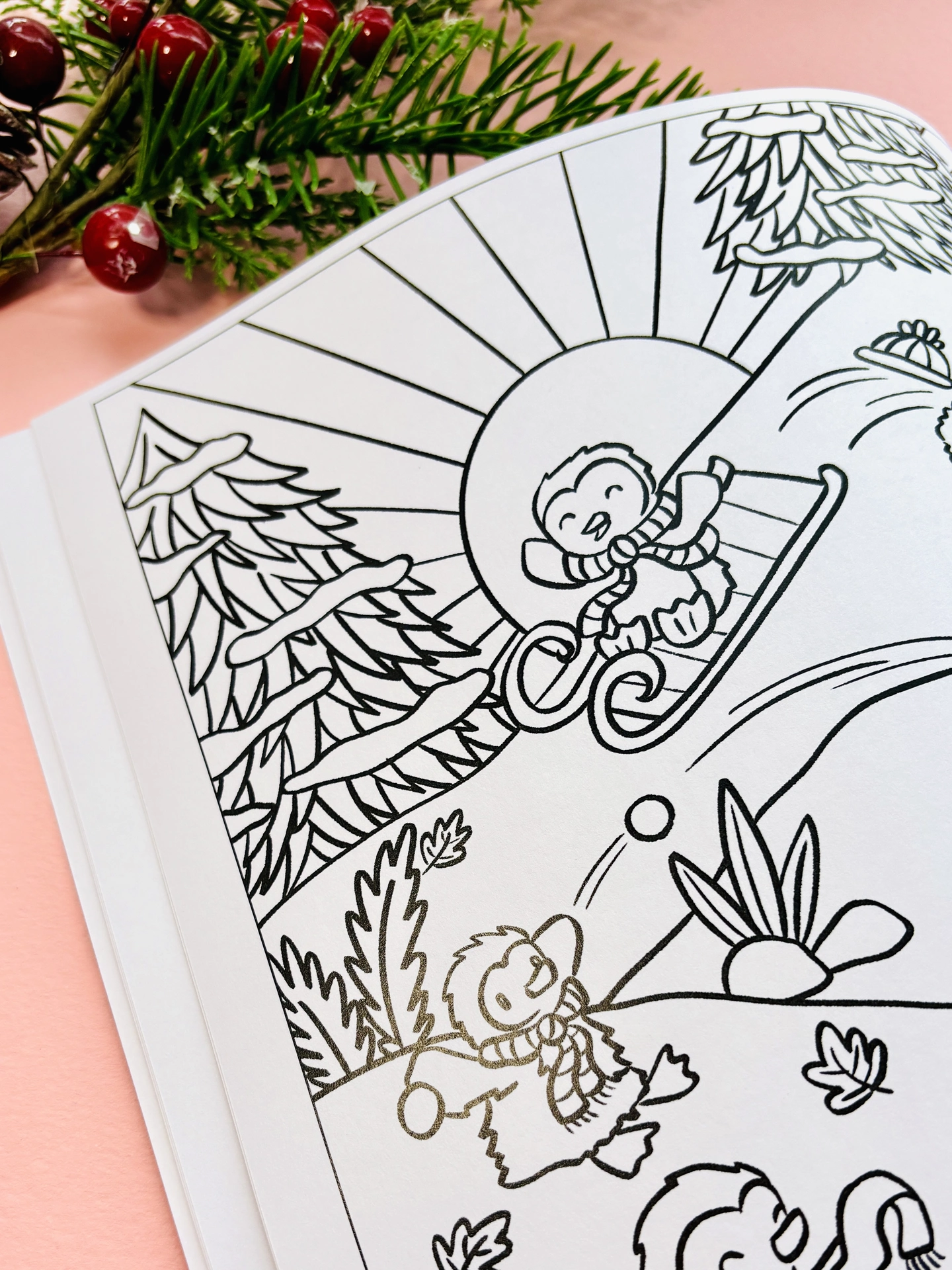 • 13 detailed Christmas colouring pages featuring adorable, character-filled illustrations