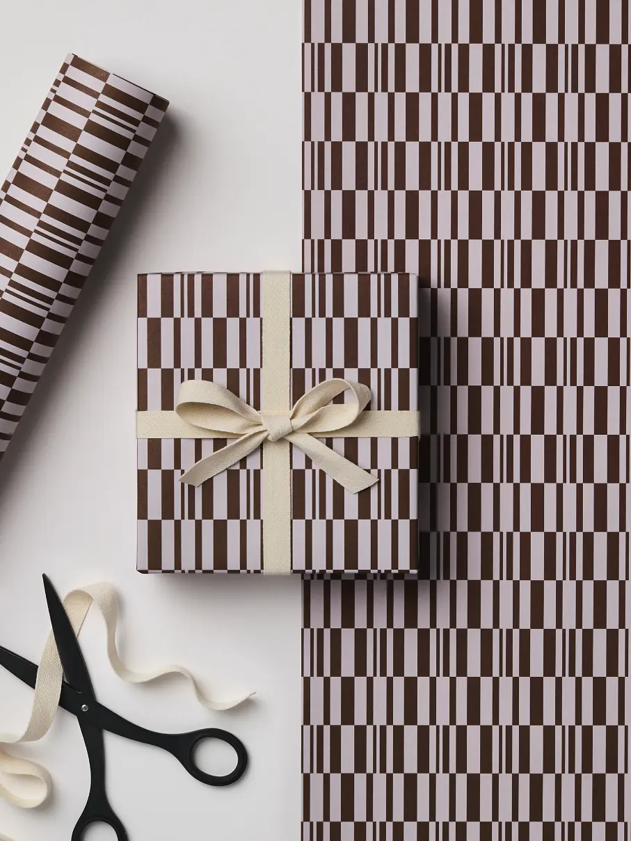 Inspired by floor tiling, our Umber Tile wrap is contemporary with a timeless colour combination. will look as great a cream or dark brown bow, Our wrap is a perfect heavy weight, often used by origami artists as it folds beautifully.