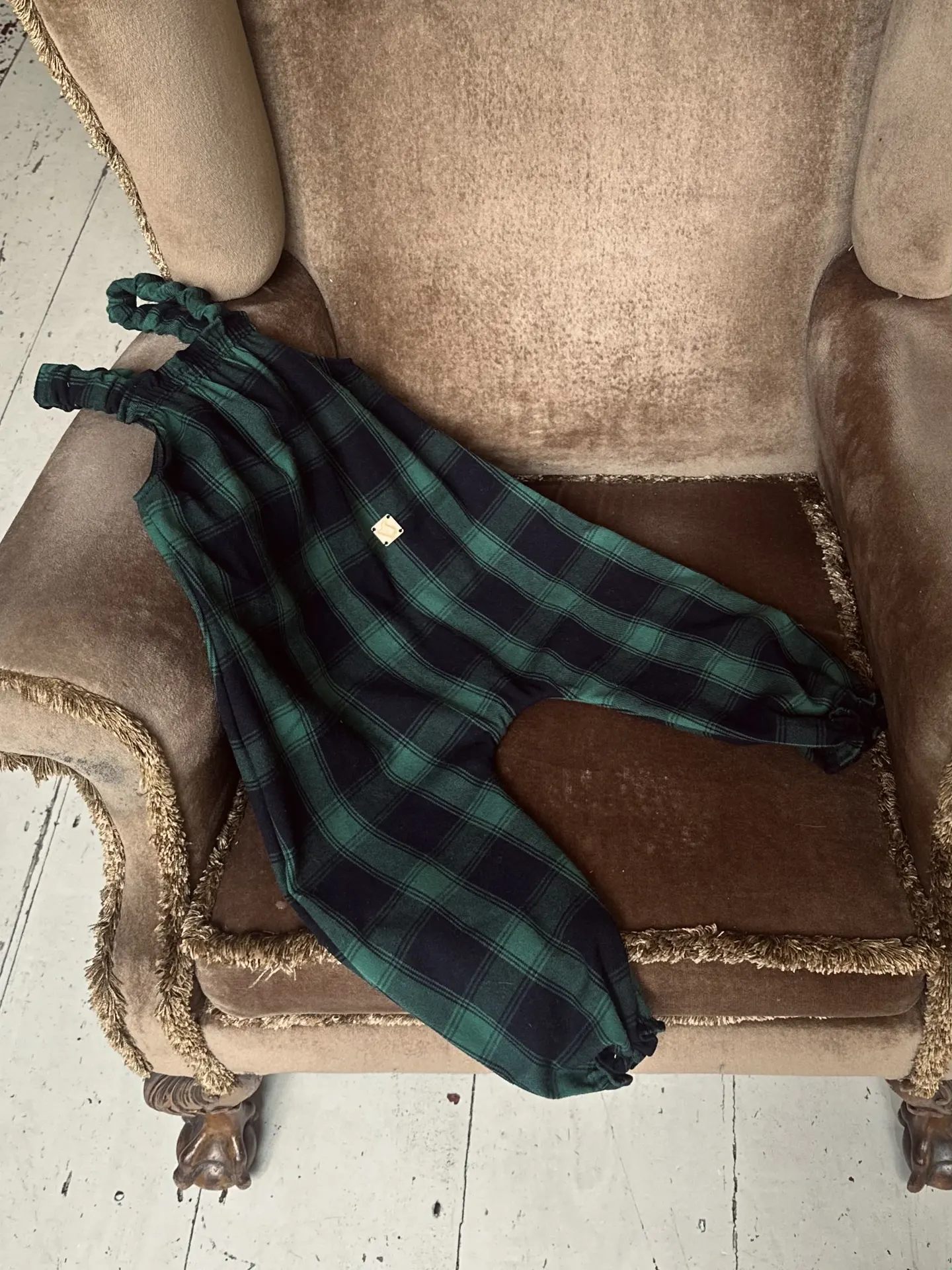 Upcycled Kids' Cotton Dungarees Green Navy Tartan