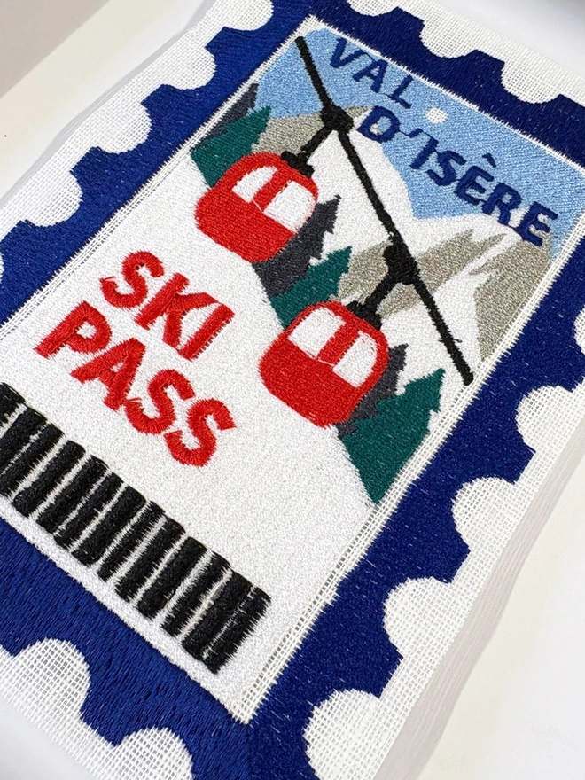 Val D'isere Embroidered Postcard Artwork