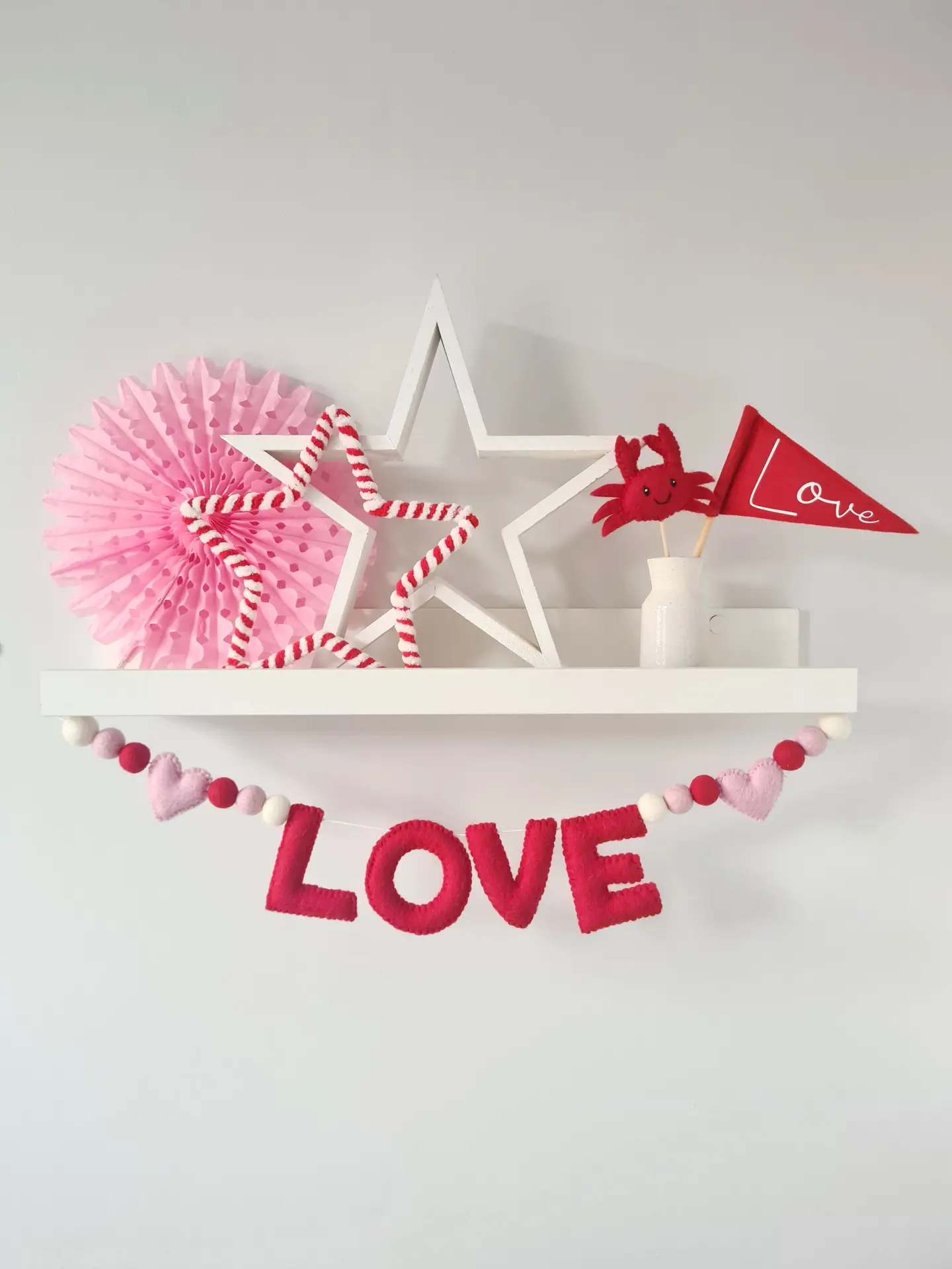 Celebrate the love with this cute red and pink felt garland. Great to hang on your wall, mantel piece, or even under a shelf full of your Valentine cards! And what's better they are eco friendly, as you can re-use them year after year. The perfect family heirloom to pass down through the generations.