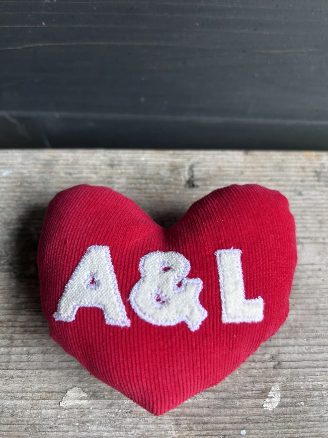 His heart is sewn from 100% cotton velvet and stuffed with hypoallergenic polyester fibre stuffing.
