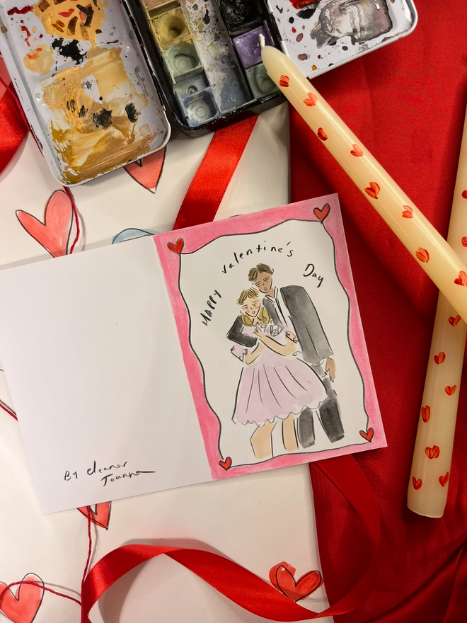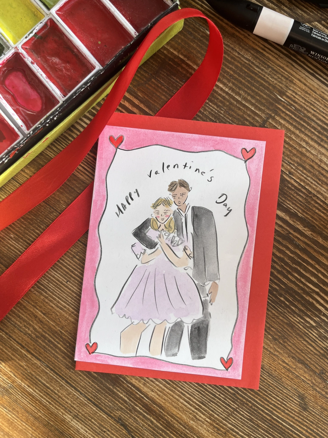 Completely personalise your hand-painted portrait with your own image/images. The background will have 'Happy Valentine's Day' Text and the border shown.