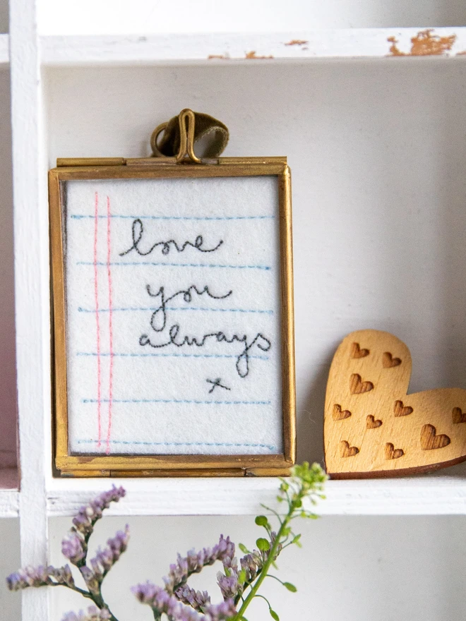 I make these tiny note frames to order which allows you to have your own choice of words.