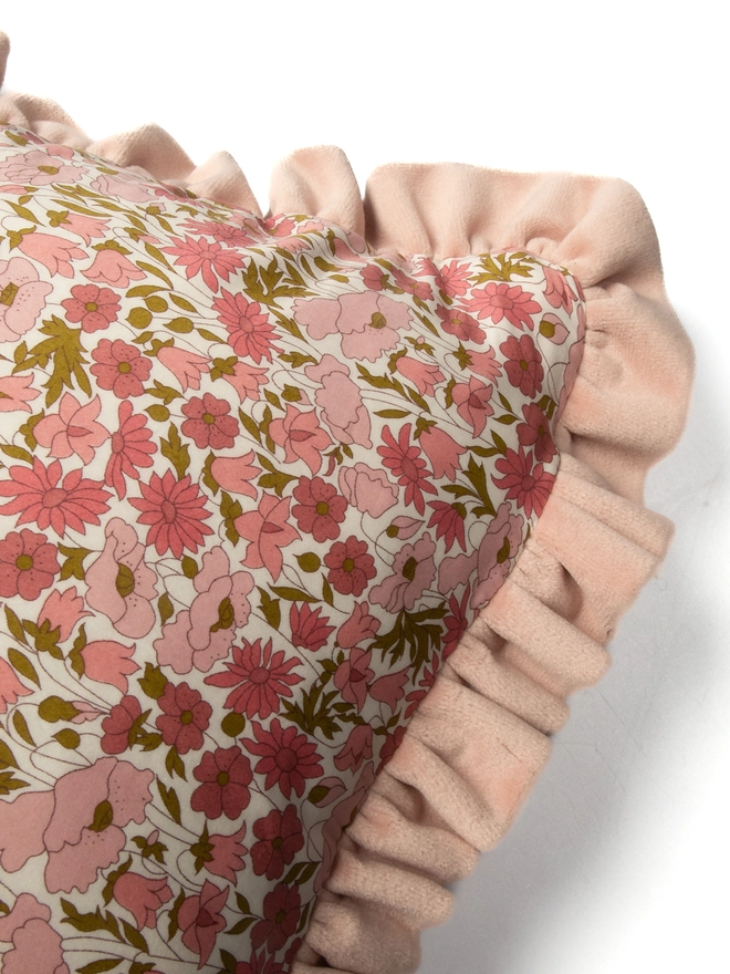 Velvet Ruffle Cushion - Liberty Fabric 'Poppy and Daisy'