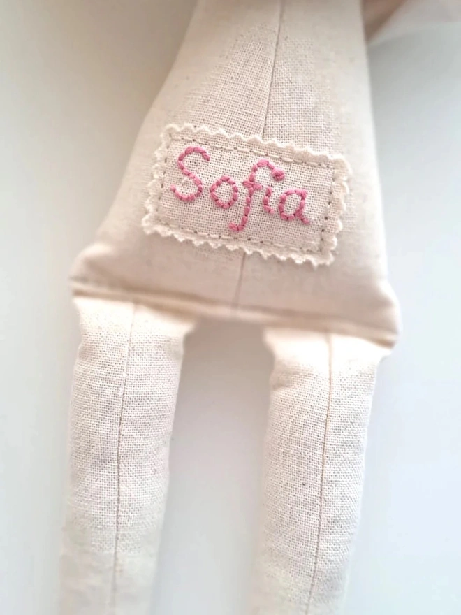 The bunny is 46cm in length from ear to foot and is stuffed with hypoallergenic toy stuffing.