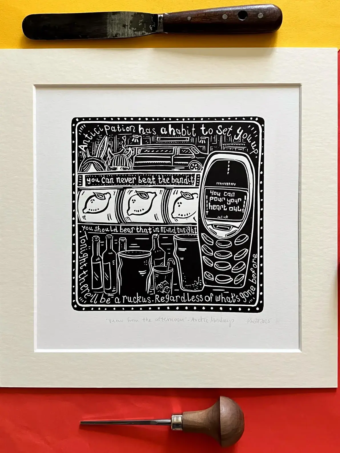 'View From The Aftenoon': Arctic Monkeys Lyric Linocut Print