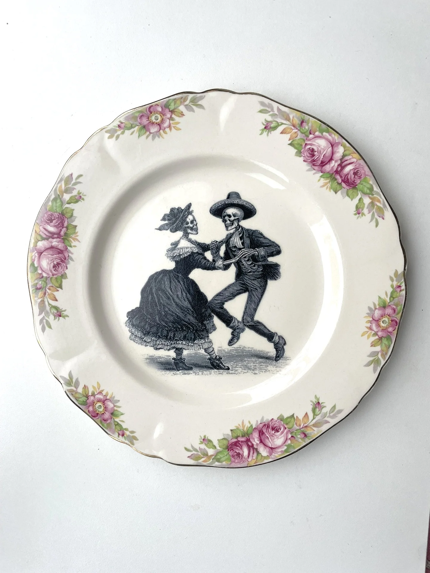 I found a vintage fine bone china plate, and sourced a vintage Day of the Dead image, and handmade and placed a decal within the ornate frame of this plate - this is a really cool way to have a little bit of vintage and a little bit of art on your wall :)