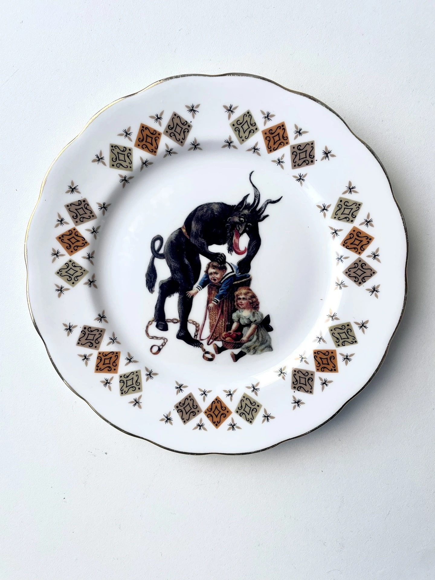 I found a vintage fine bone china plate, and sourced a vintage Krampus image, and handmade and placed a decal within the ornate frame of this plate - this is a really cool way to have a little bit of vintage and a little bit of art on your wall :)