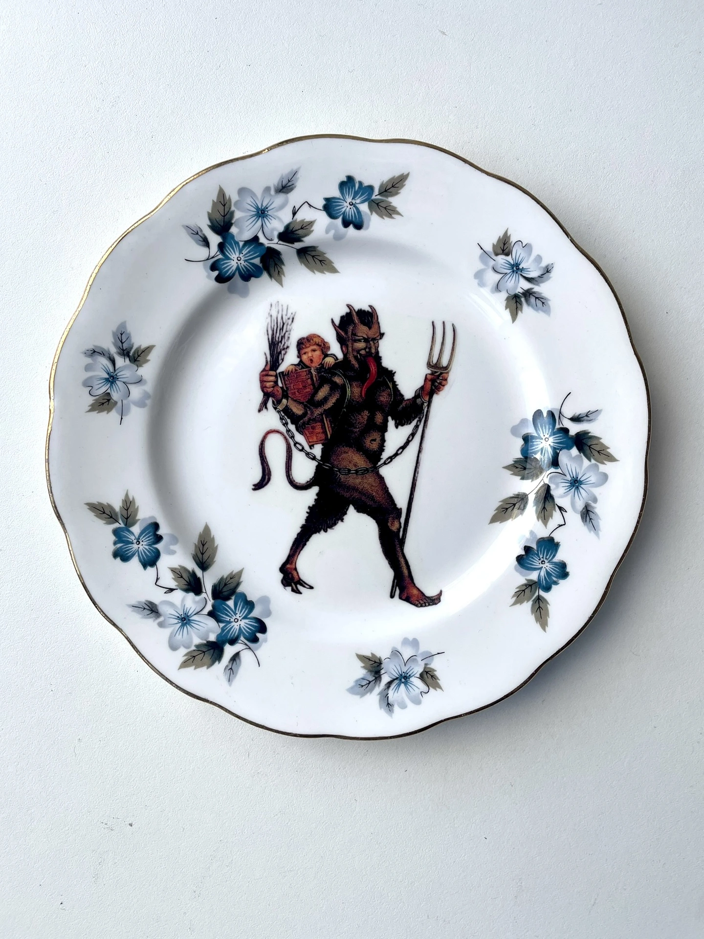 I found a vintage fine bone china plate, and sourced a vintage Krampus image, and handmade and placed a decal within the ornate frame of this plate - this is a really cool way to have a little bit of vintage and a little bit of art on your wall :)