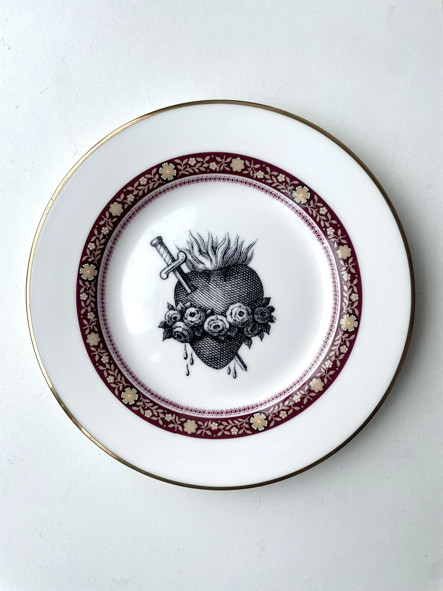 I found a vintage fine bone china plate, and sourced a vintage sacred heart image, and handmade and placed a decal within the ornate frame of this plate - this is a really cool way to have a little bit of vintage and a little bit of art on your wall :)