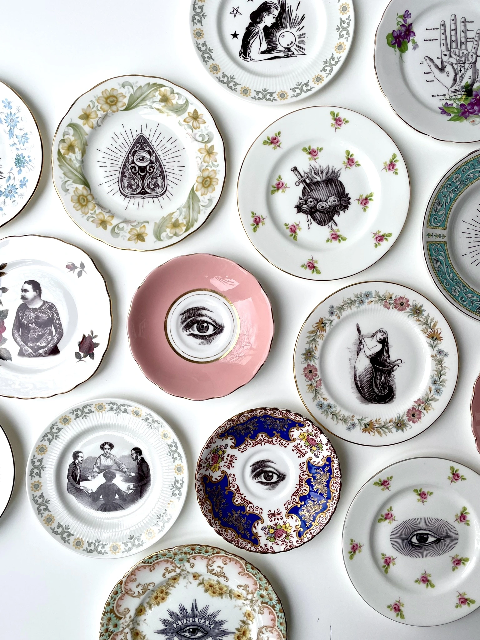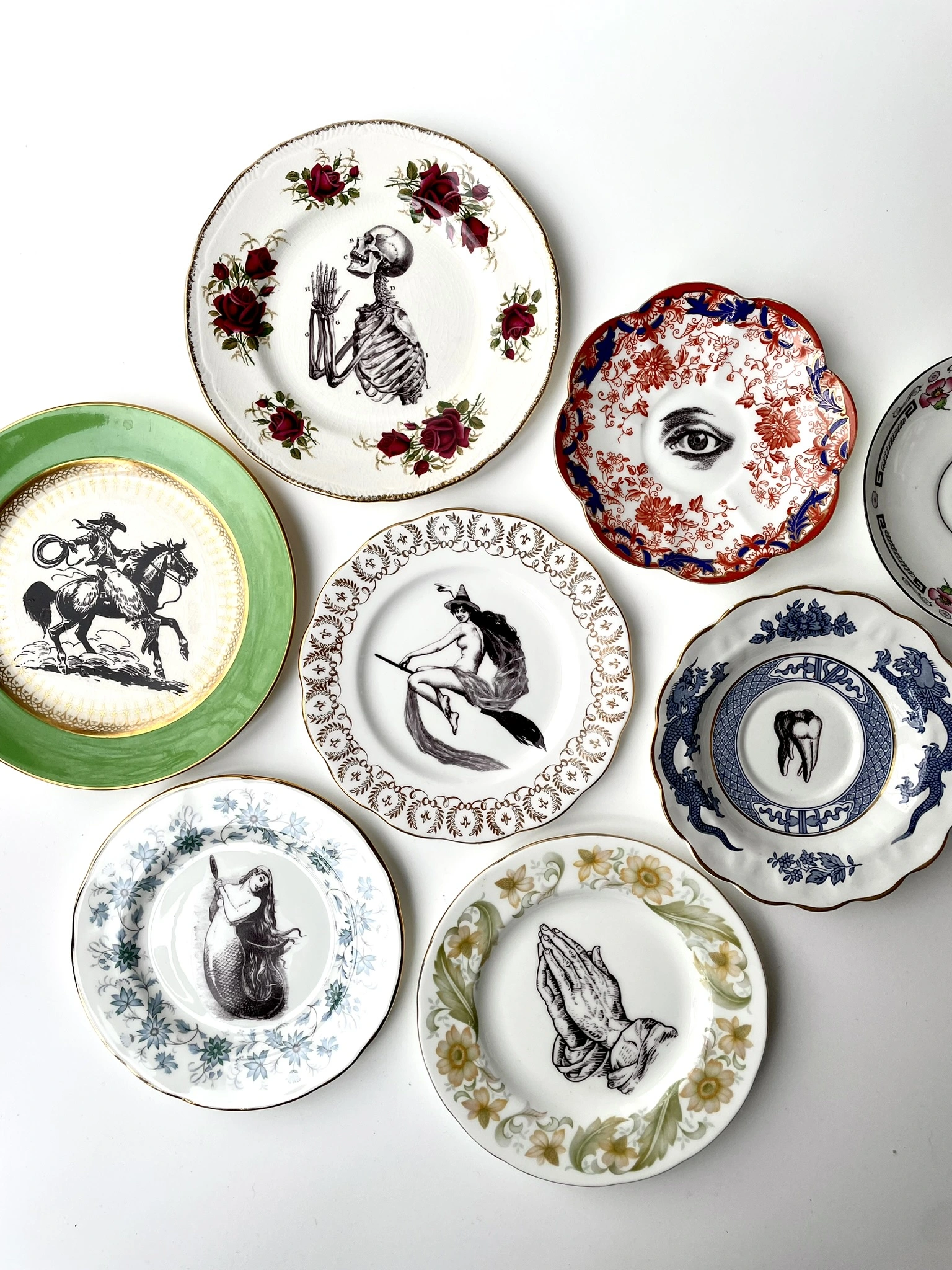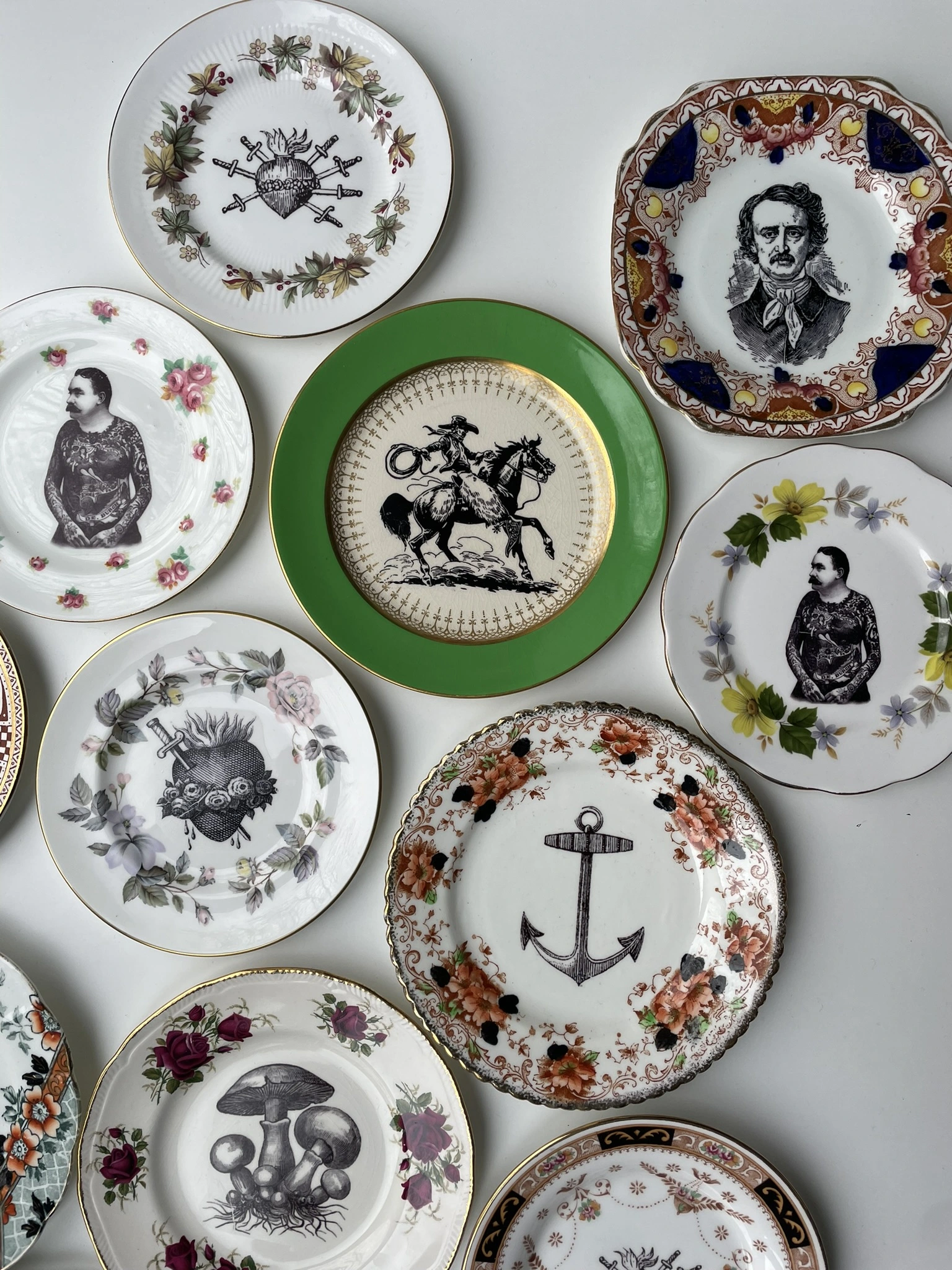 My plate collection is huge so I will never make two the same. This plate/image combination is therefore one of a kind design, and will look great mixed in with other plates and pieces on your wall.