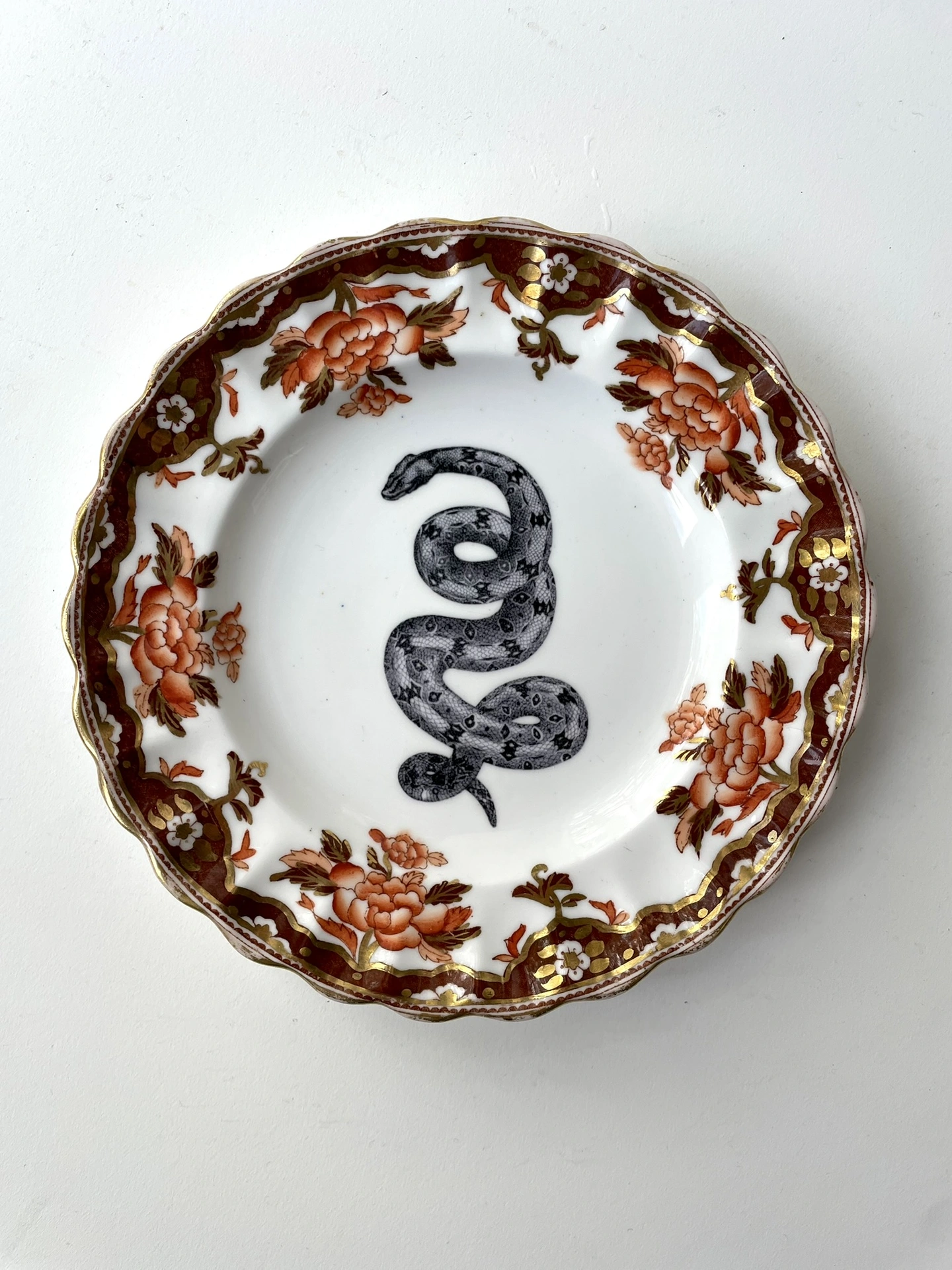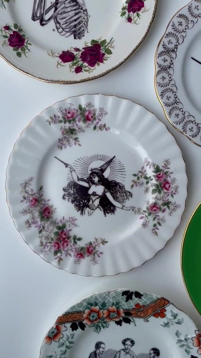 I found a vintage fine bone china plate, and sourced a vintage snake image, and handmade and placed a decal within the ornate frame of this plate - this is a really cool way to have a little bit of vintage and a little bit of gothic art on your wall :)