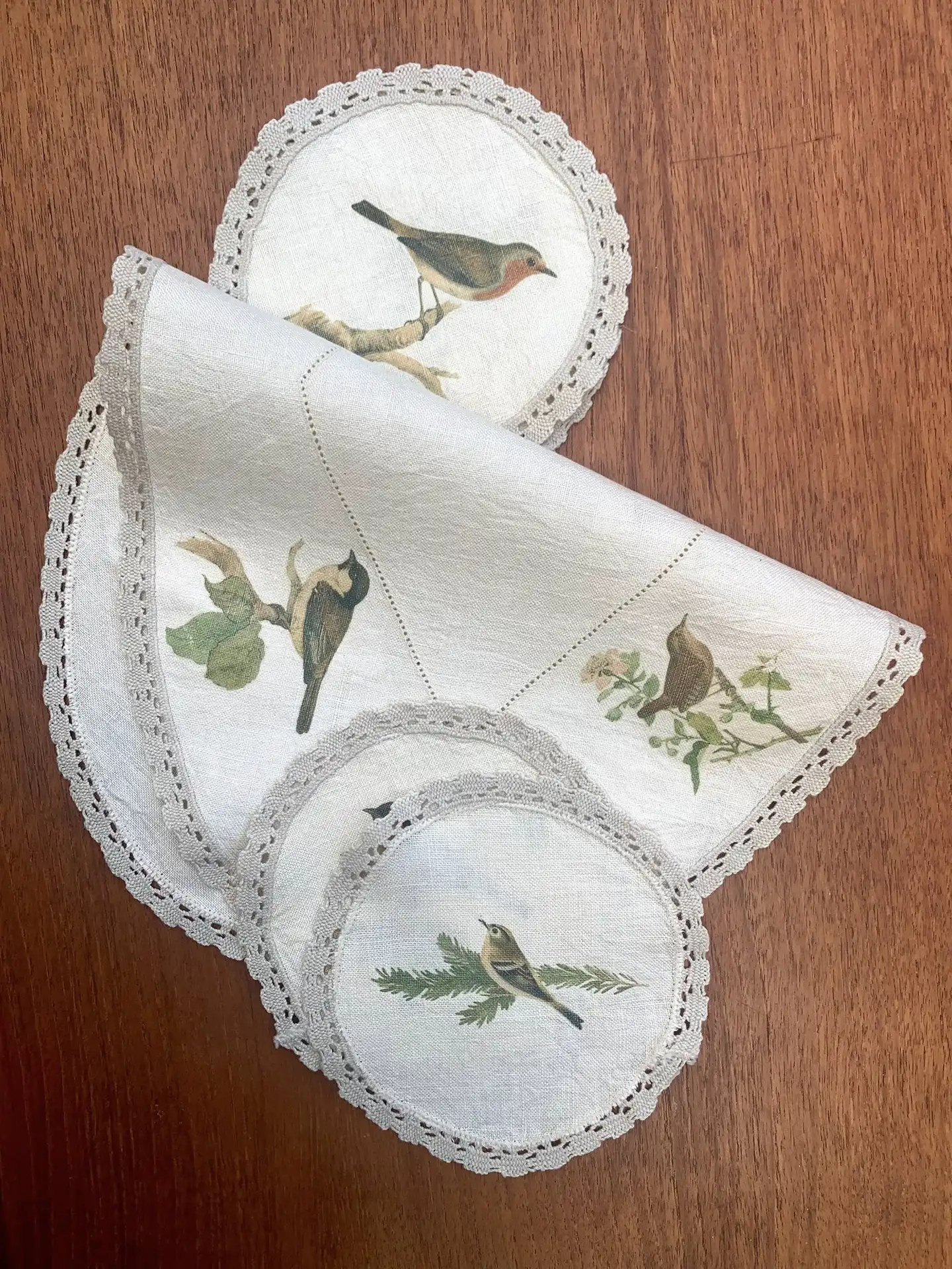 Vintage Table Linen Set with Garden Birds