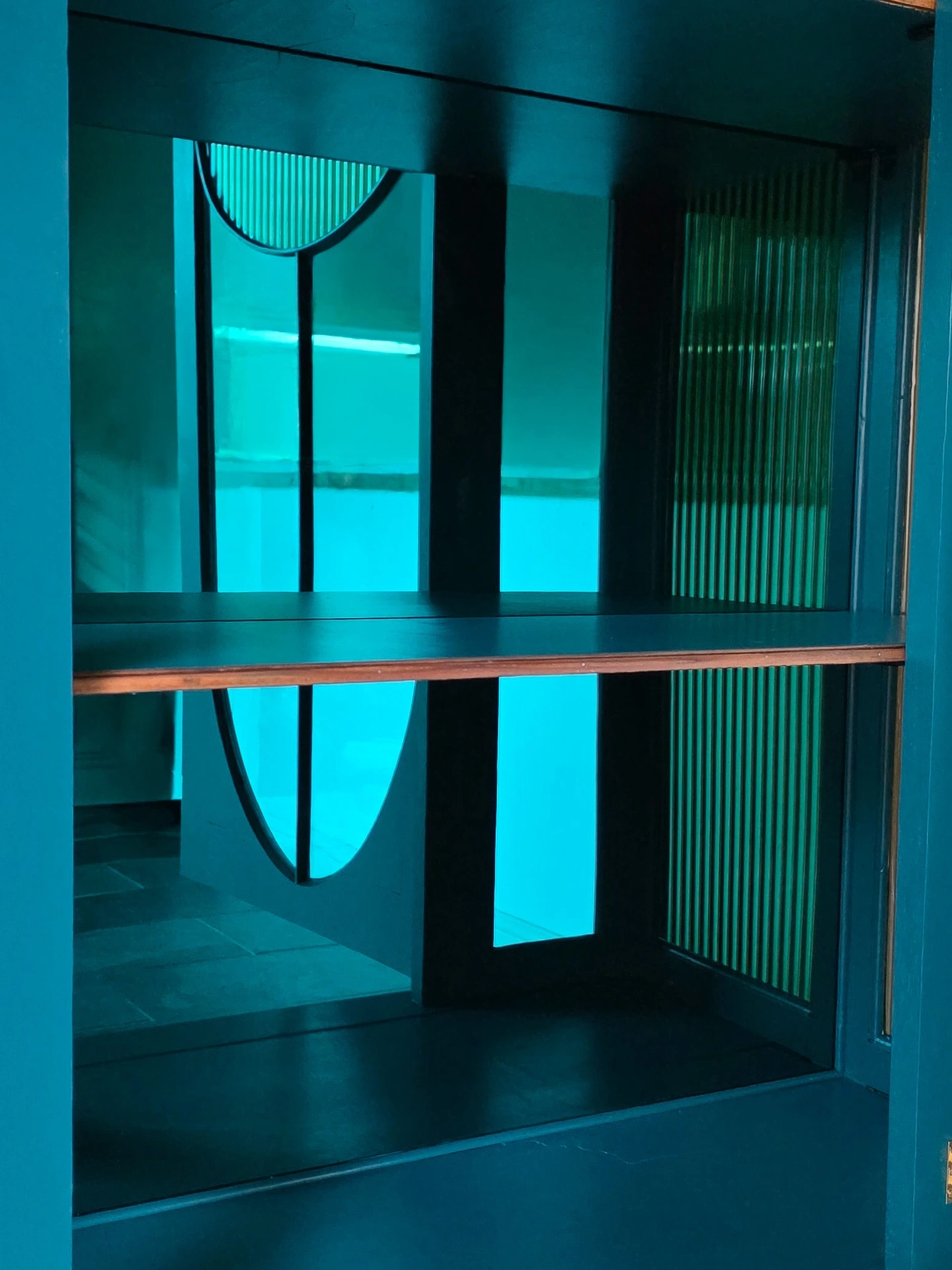 Vintage Teal and Reeded Glass Drinks Display Cabinet