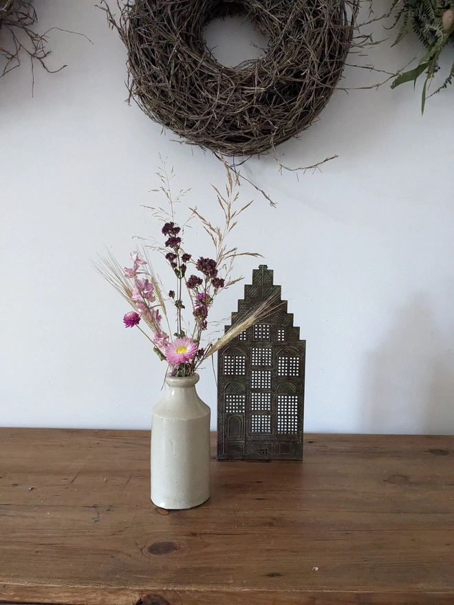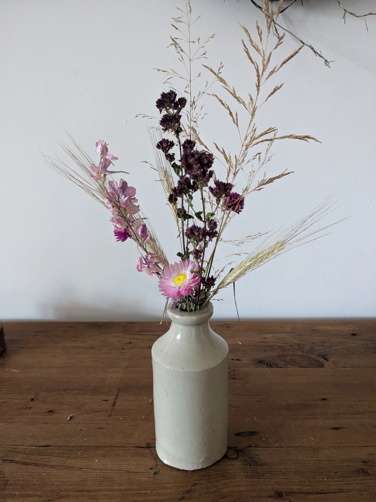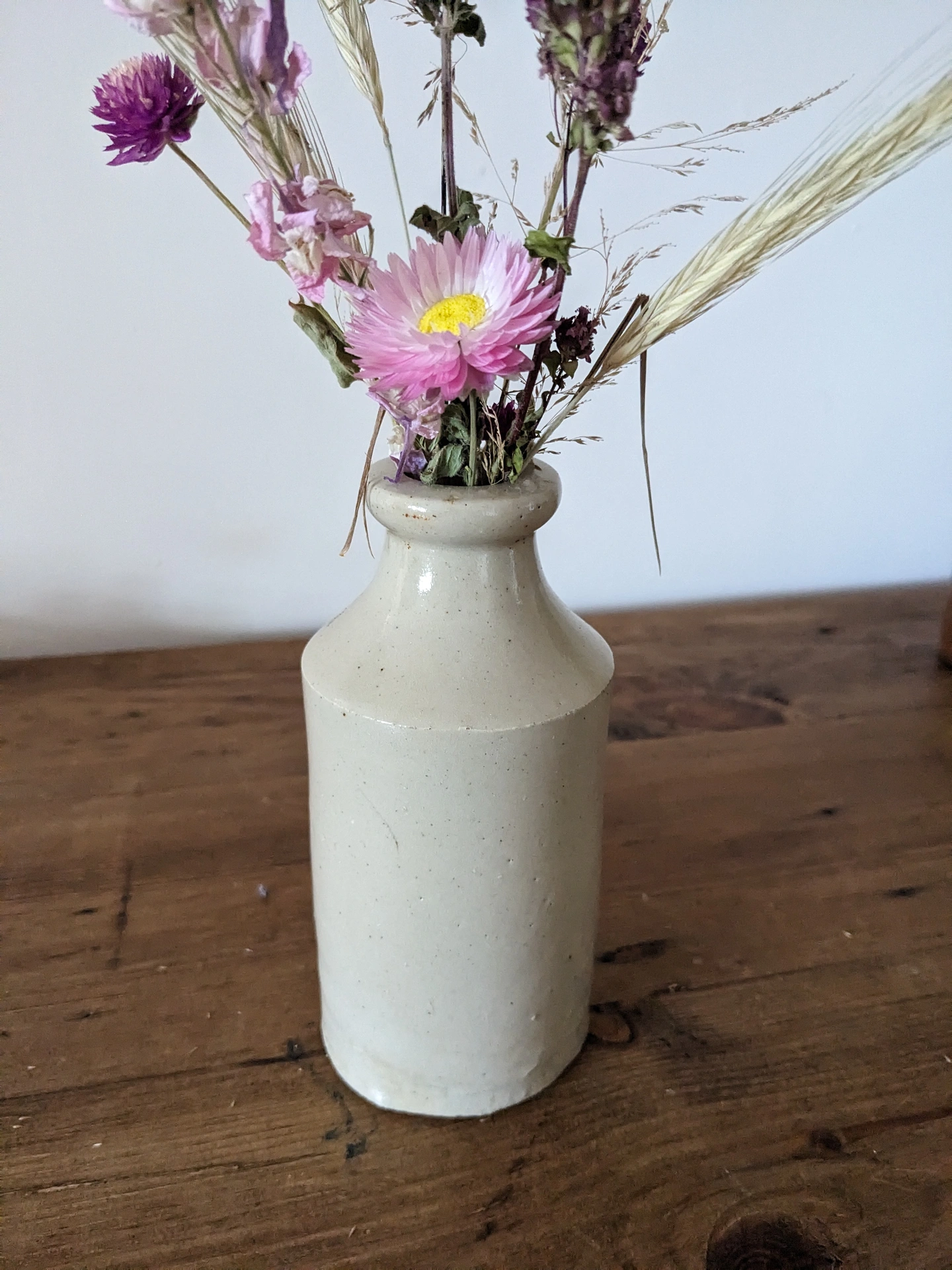 Vintage Stoneware Vase with Dried Flowers