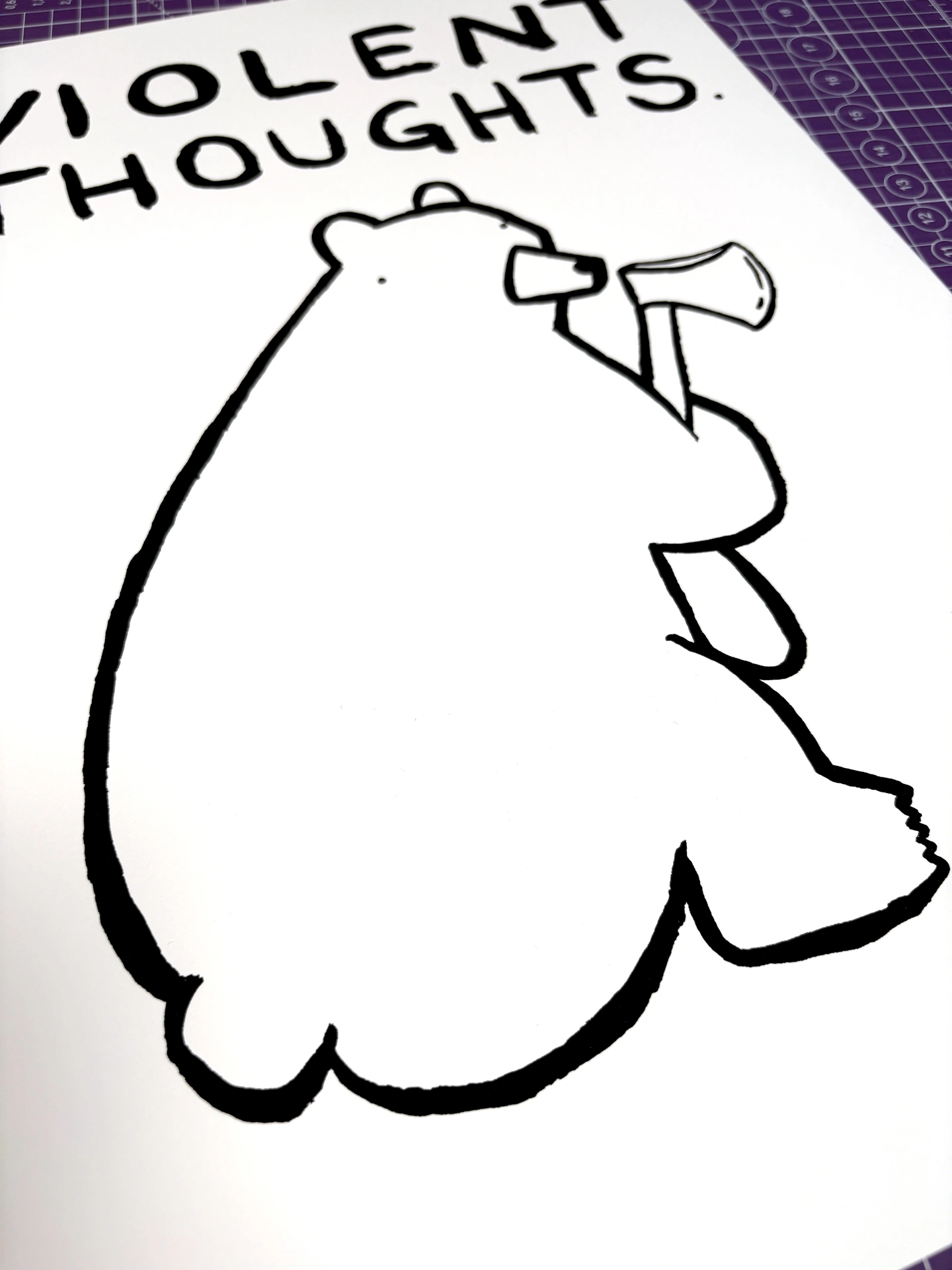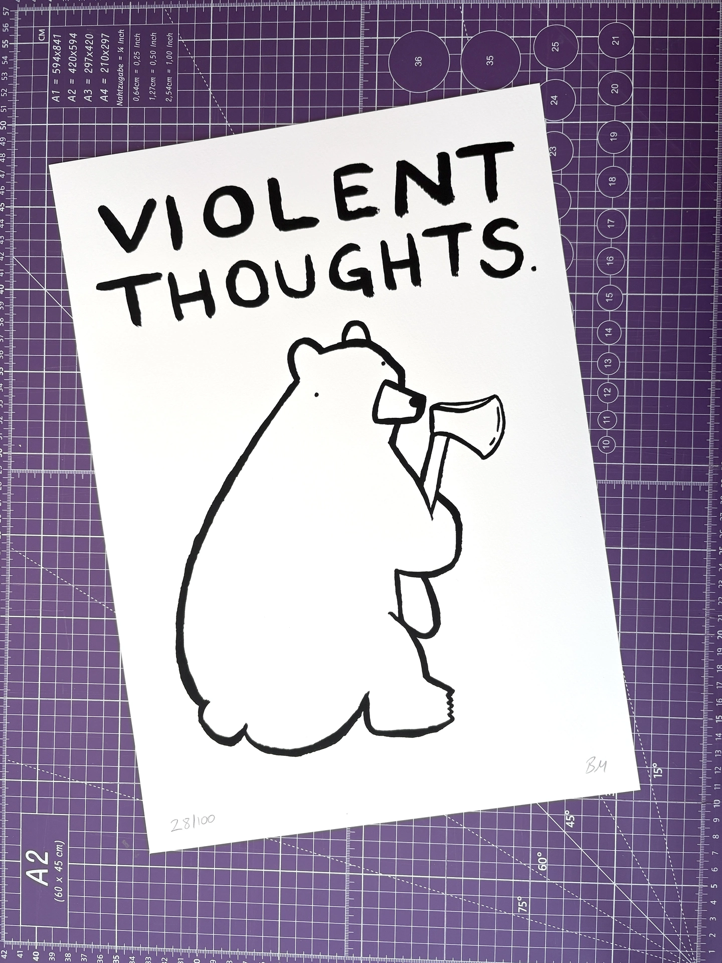 Screen print of original 'Violent Thoughts' design, hand printed by the artist.
