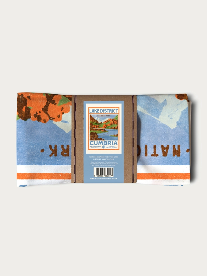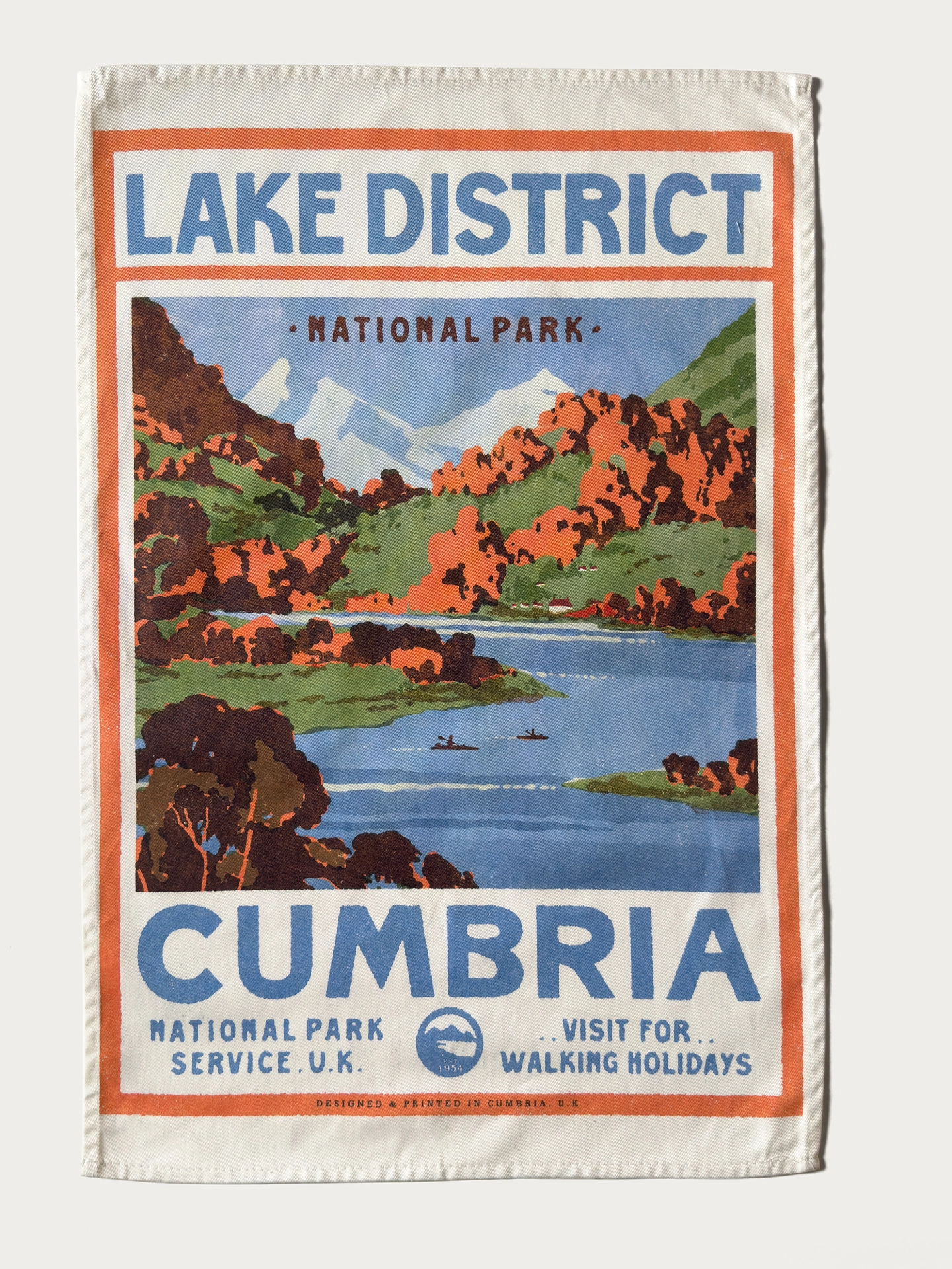 Retro artwork in the style of a vintage railway poster printed in the UK on a high quality, thick, cotton canvas, tea towel. Whether they are used at home or on adventures out in the camper van it makes the perfect, practical gift for a fan of the Lake District.