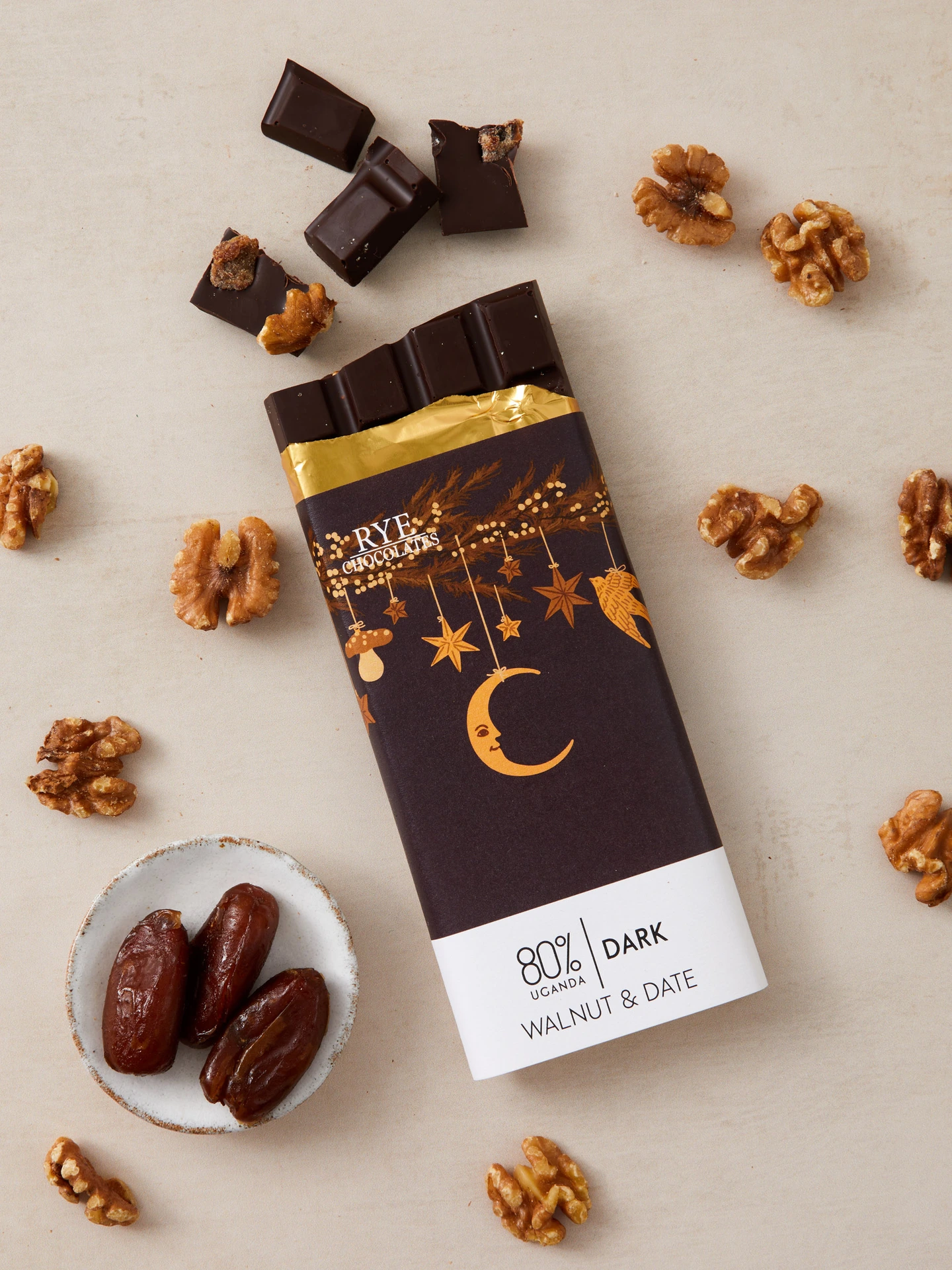 Walnut & Date Chocolate Bar - 80% Ugandan