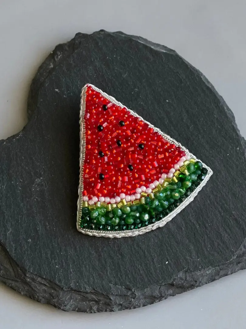 Cute little beaded watermelon slice brooch, made of high quality materials.