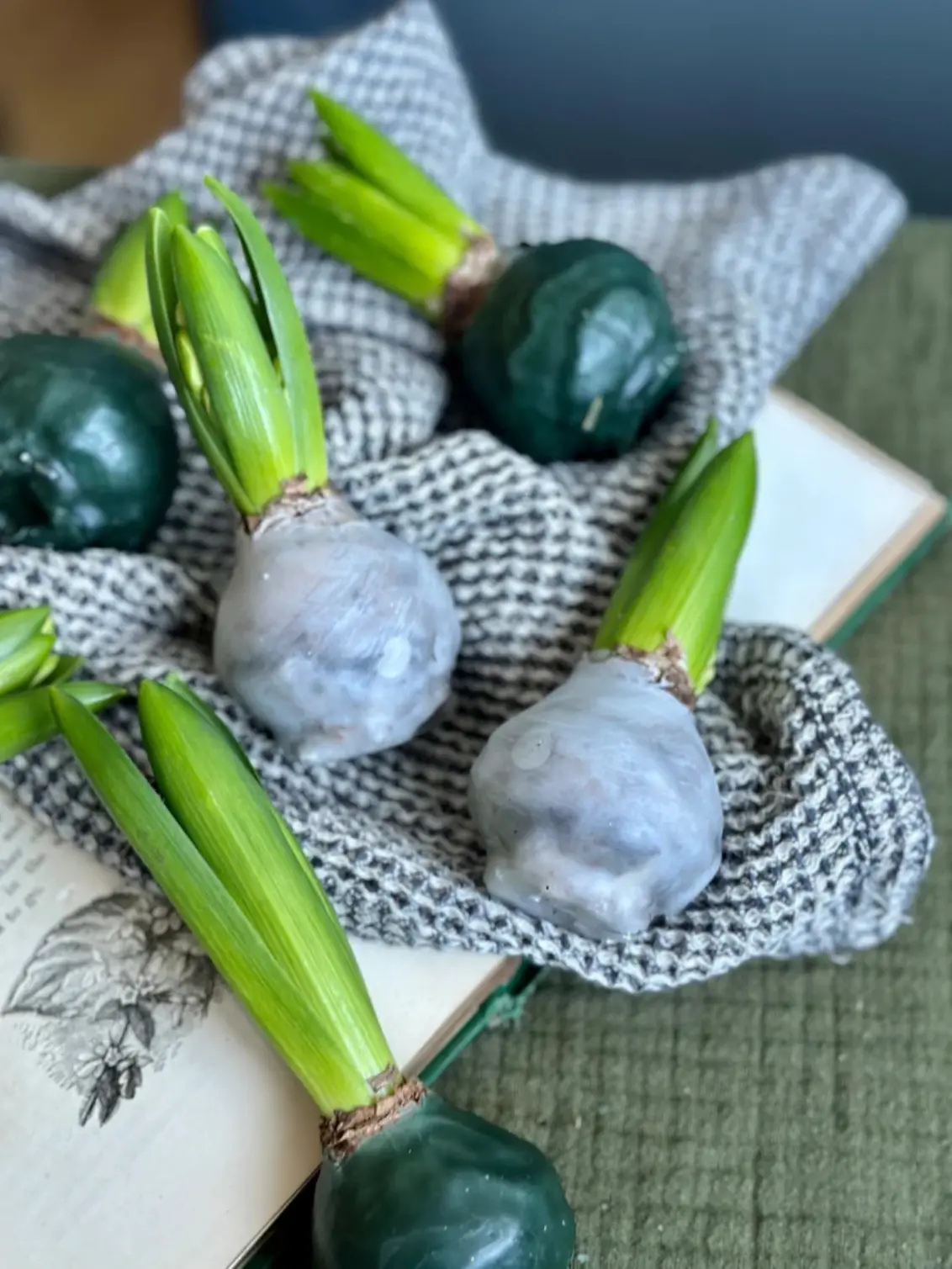 Waxed hyacinths dipped in white or green wax are a beautiful and unique way to add a unique touch to any home or event.