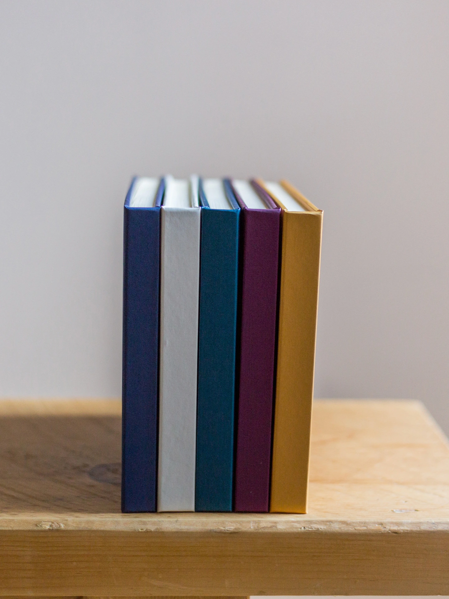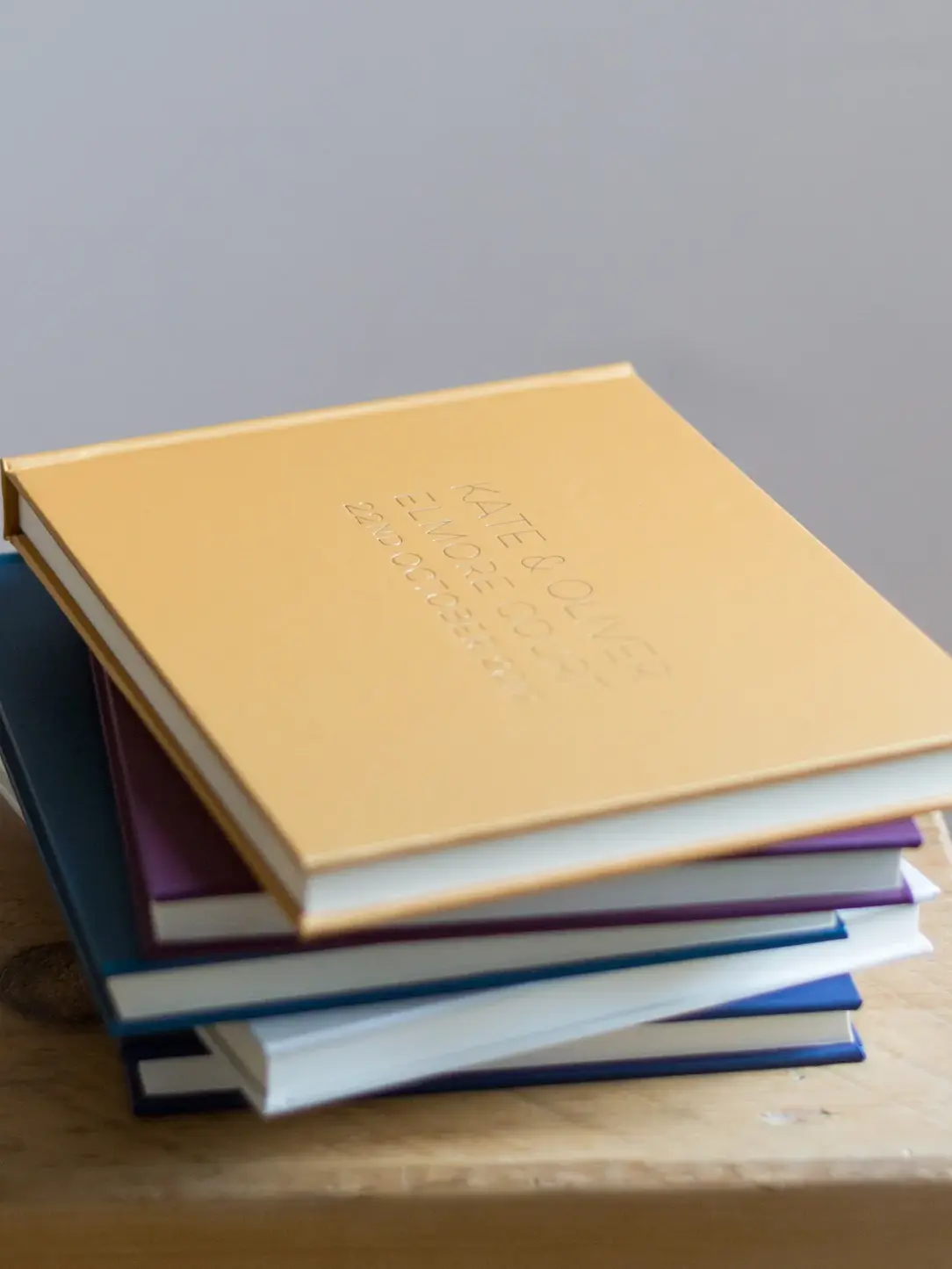 A very sleek, modern and understated looking guest book. Beautifully hand bound in our workshop in Wiltshire using traditional bookbinding techniques for a premium finish. Covered in our premium 'jewel' book cloth, these guest books are available in a choice of eleven rich and iridescent shades, meaning you'll find the perfect complement for your wedding theme.