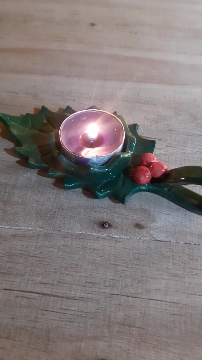 Each piece is hand-sculpted and glazed in rich green with a deep sheen that catches the candlelight beautifully. Designed to hold a standard tealight, it brings an instant glow of Christmas nostalgia to your mantel, bedside, or festive table.