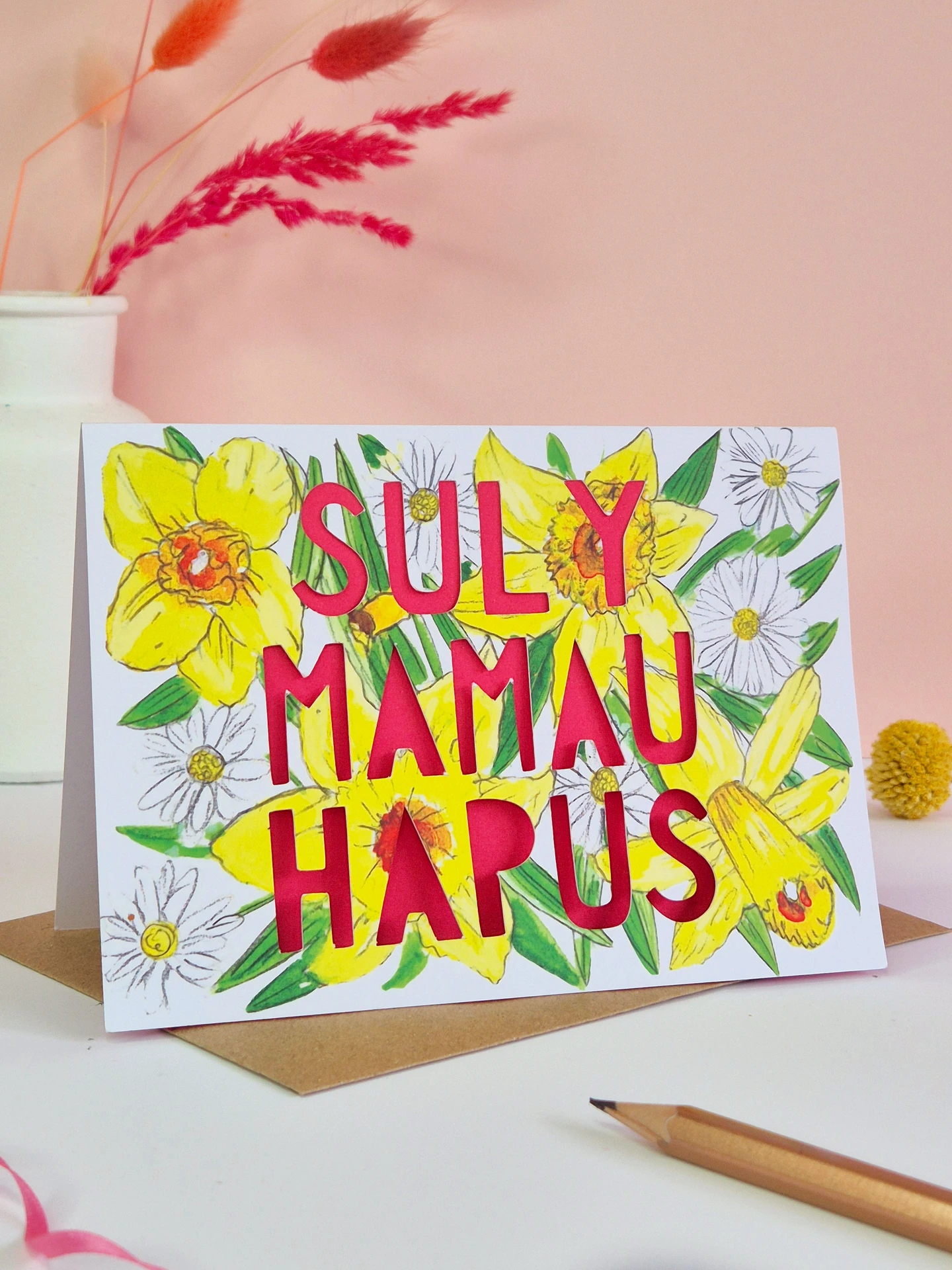 A welsh language Mother's Day Card which says 'Sul y Mamau Hapus'.