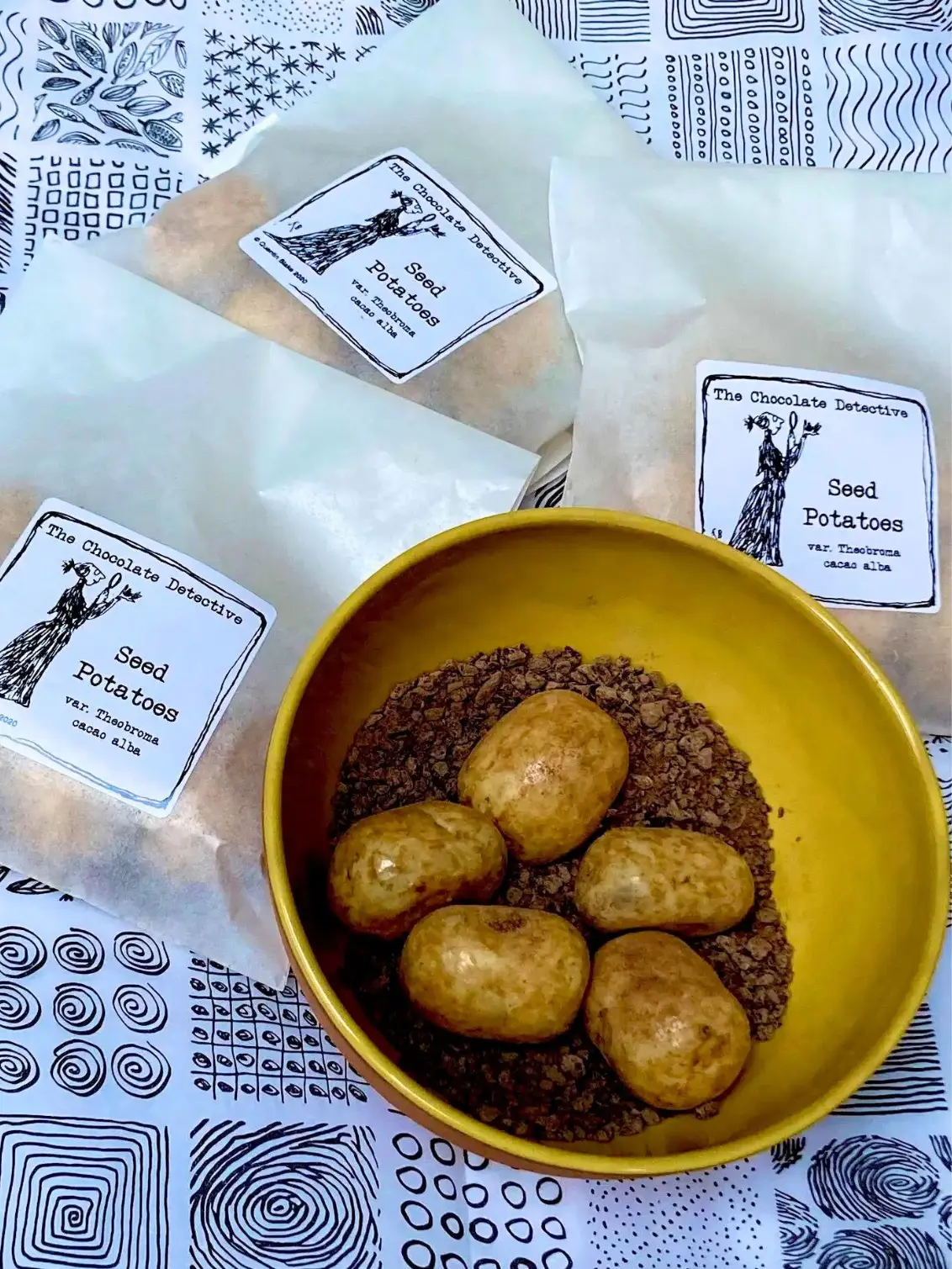 Delicious seed potatoes made of chocolate and almonds to fool your gardening friends! Comes with its own chocolate ‘soil’ to make a cup of drinking chocolate with!