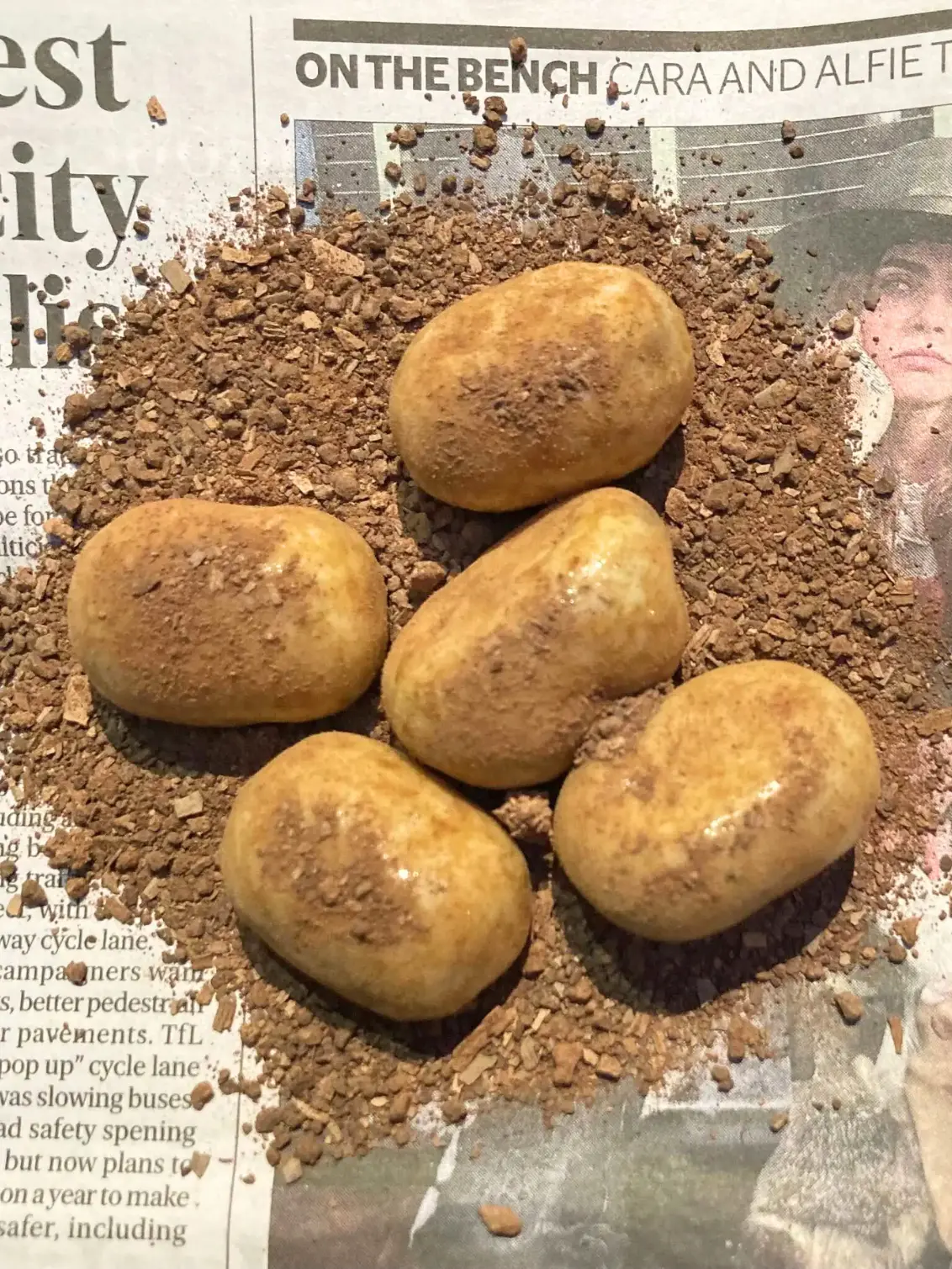 White Chocolate Praline Seed Potatoes & Chocolate 'Soil'