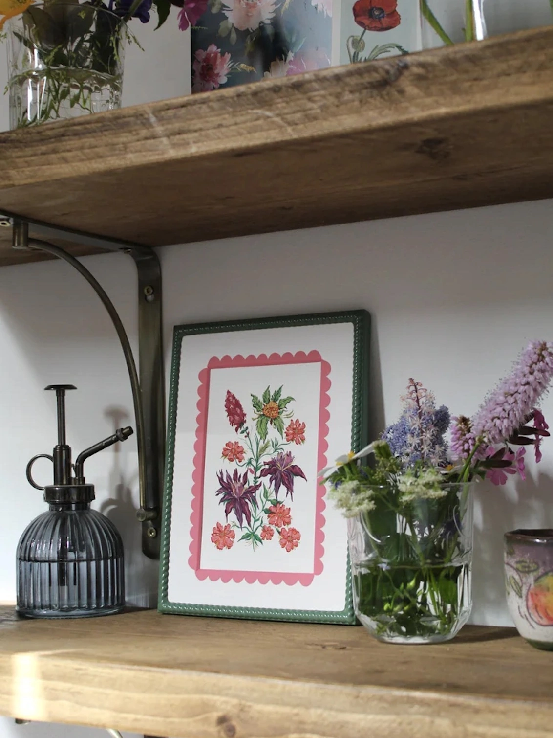 A high-quality art print, inspired by the beauty of botanicals, and their intricate details, framed in a signature hand-painted scallop mount.