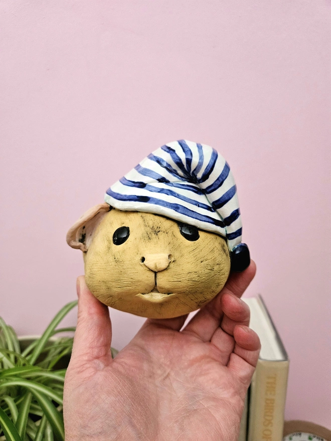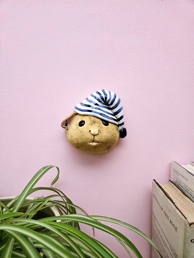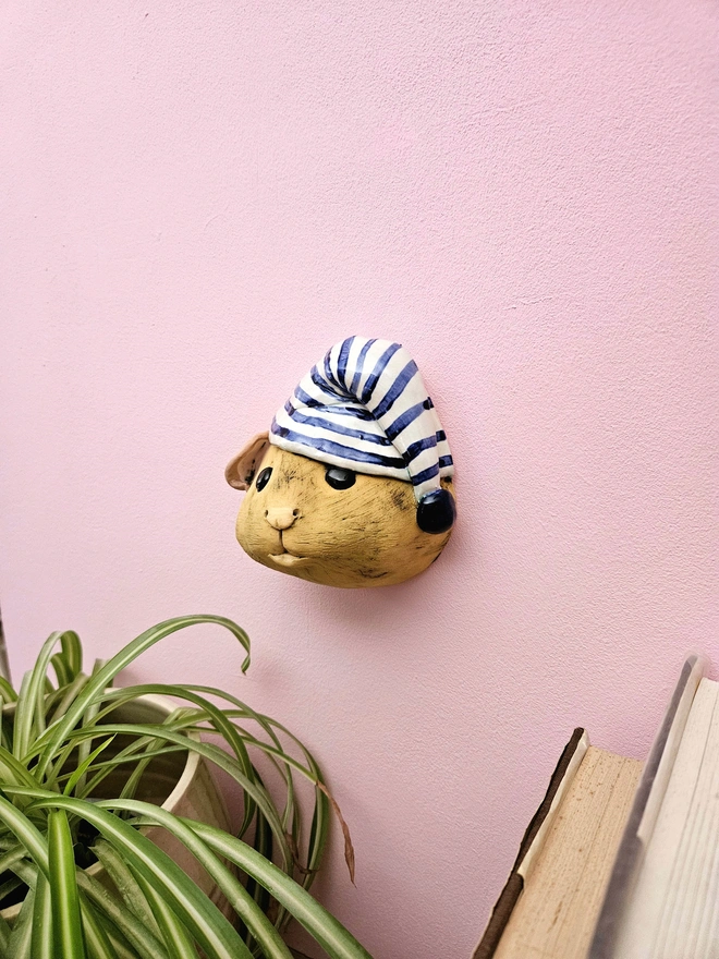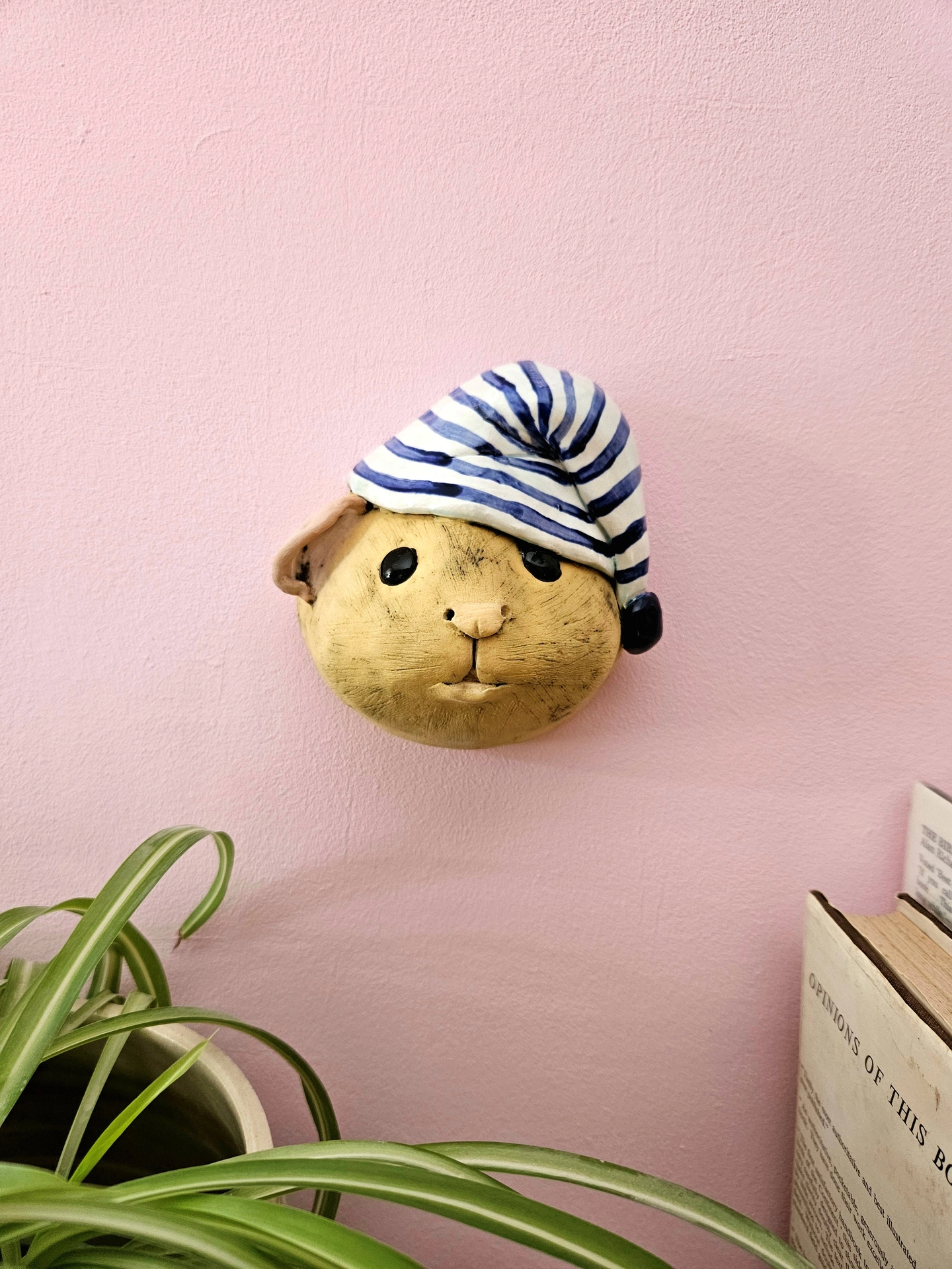 Willy is cute hamster head wearing a stripey blue and white hat. Great for any animal lover or kitsch home owner.